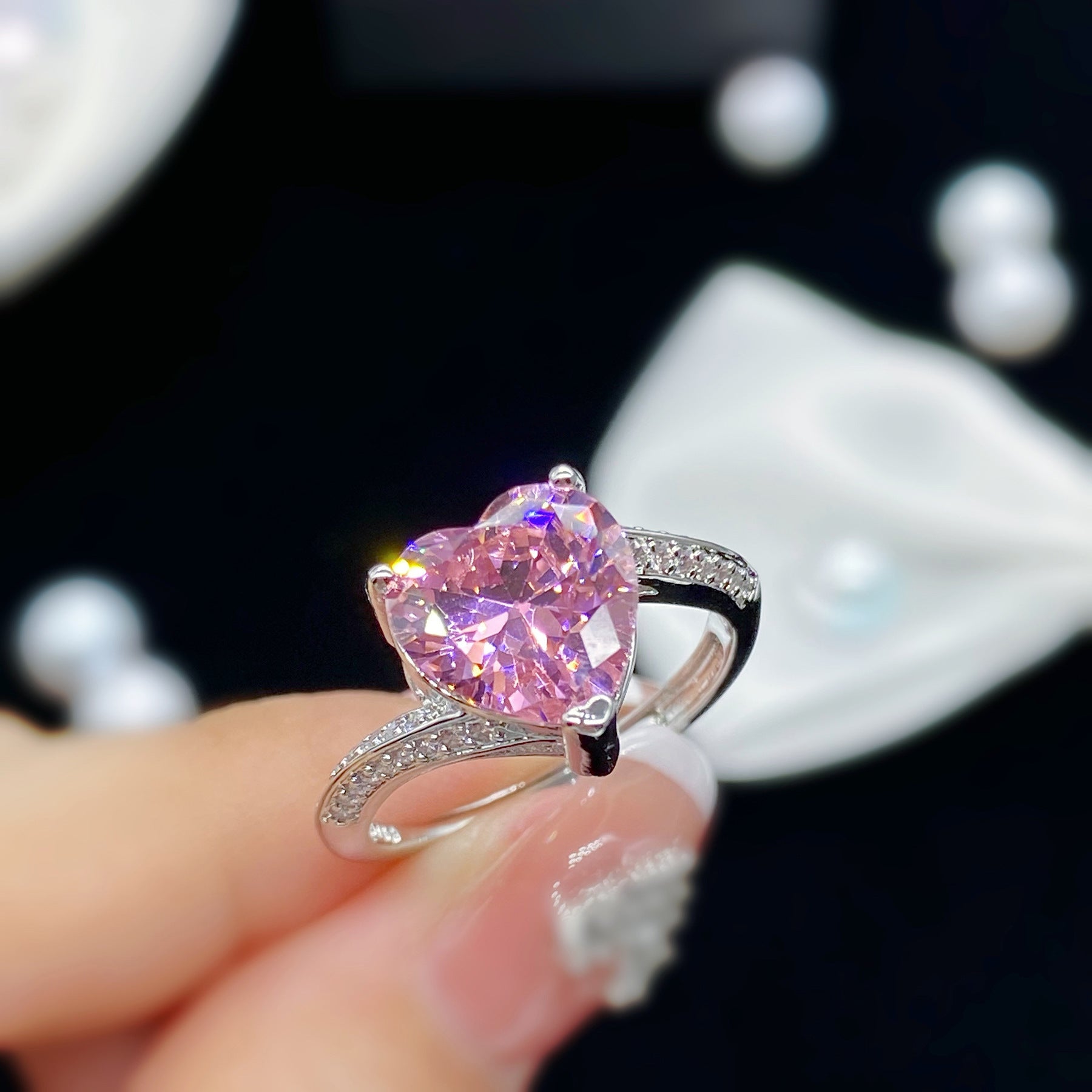 Fashion Pink Tourmaline Heart Shape Adjustable Zircon Copper Ring