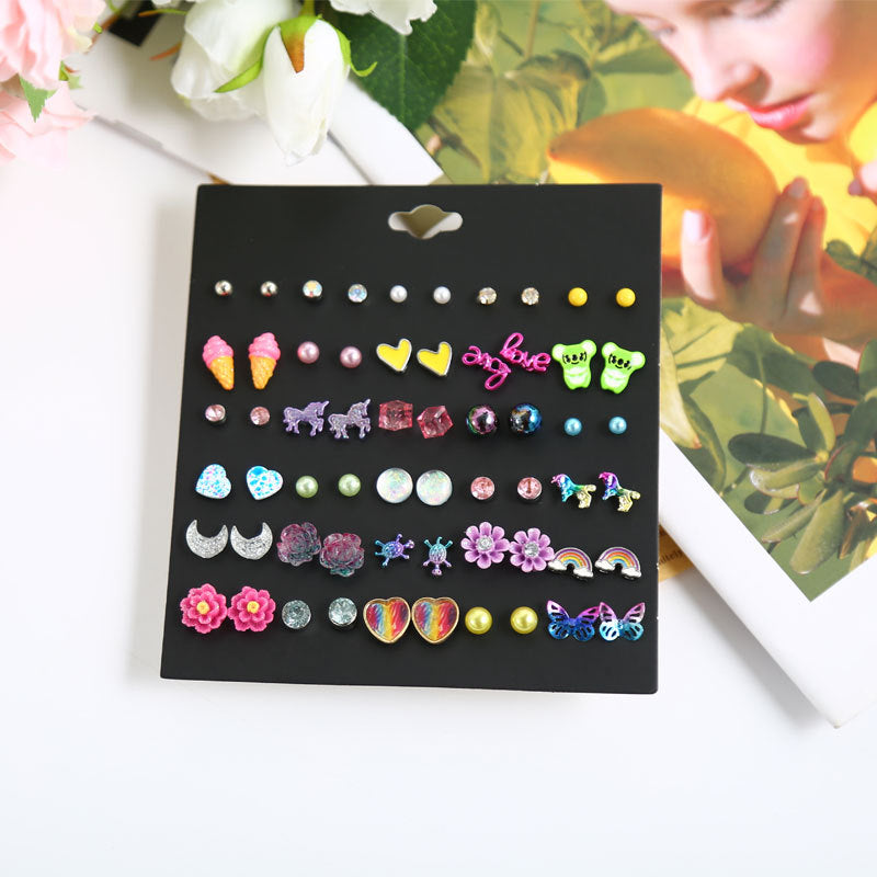 Heart Shape Flower & Butterfly Crystal Resin Alloy Earrings Set