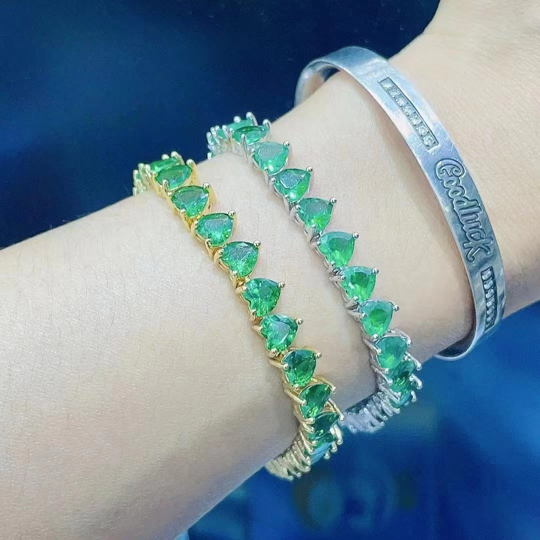 Fashion Heart Shape Zircon Women's Bangle with Green Zircon Accents