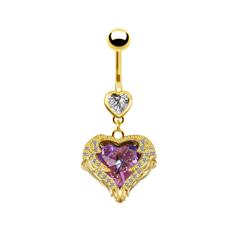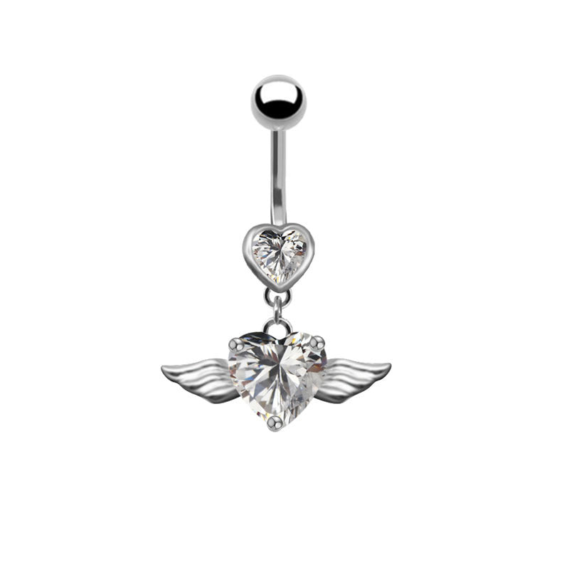 Fashion Angel Wing Heart Zircon Stainless Steel Belly Ring