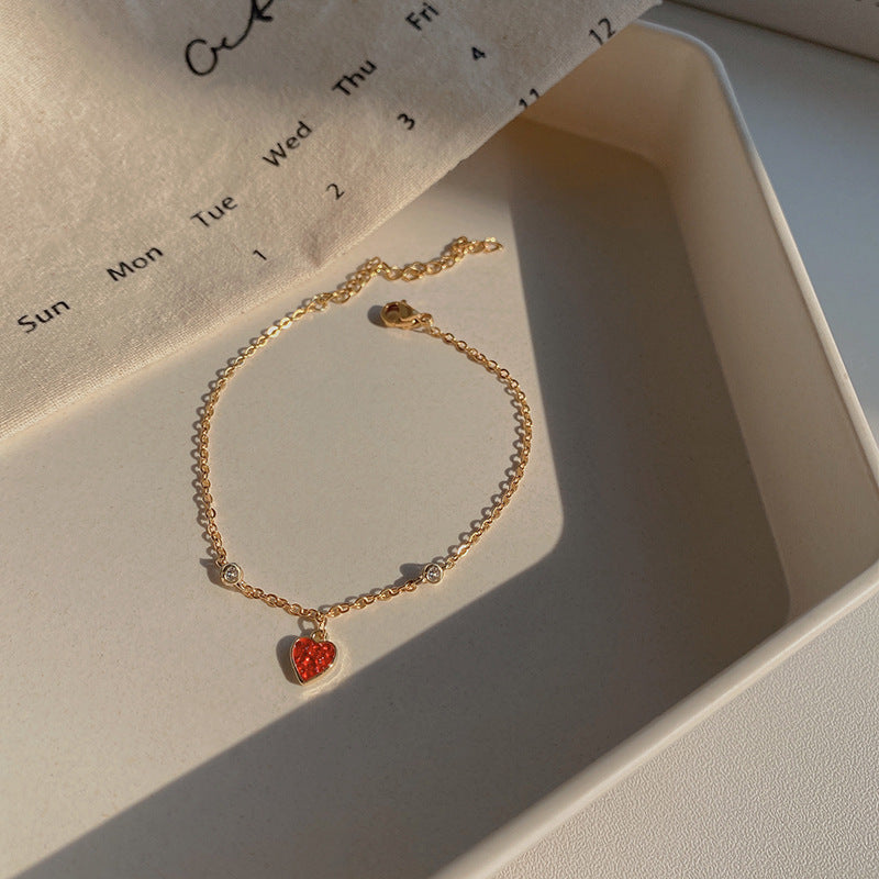 Hexagram Heart Pearl Zircon Titanium Steel Bracelet - Korean Vintage Style
