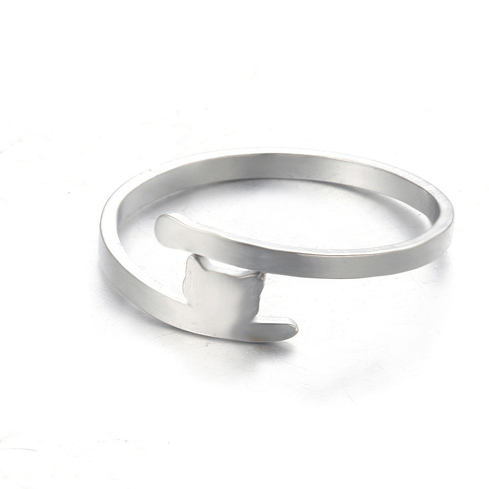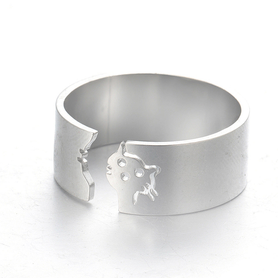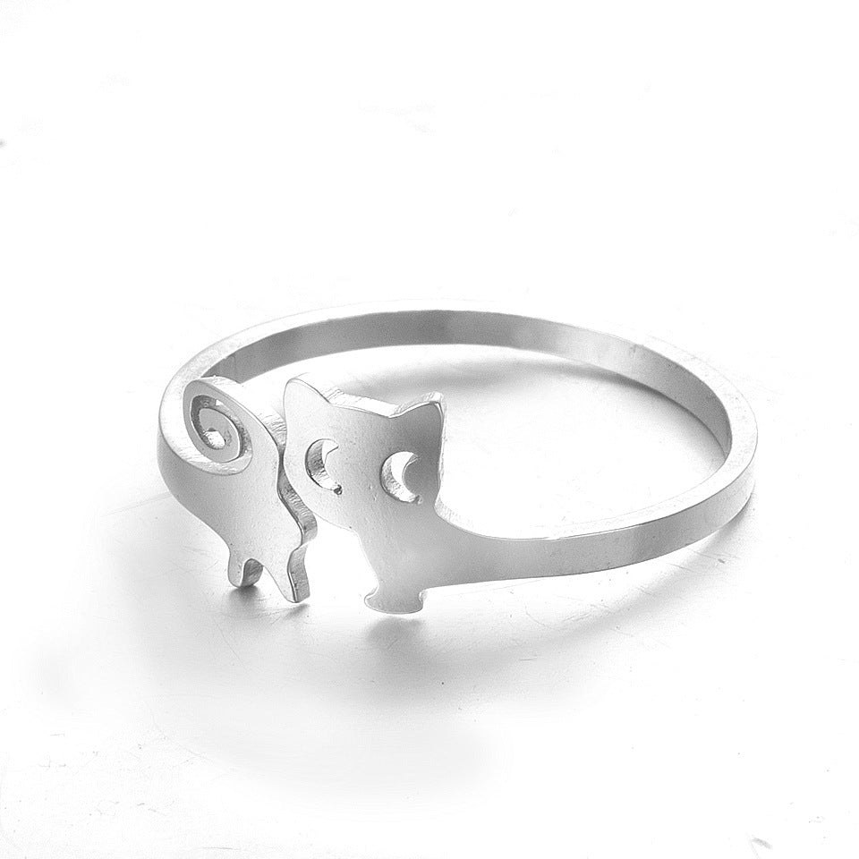Fashion Hollow Cat Stainless Steel Adjustable Ring Set