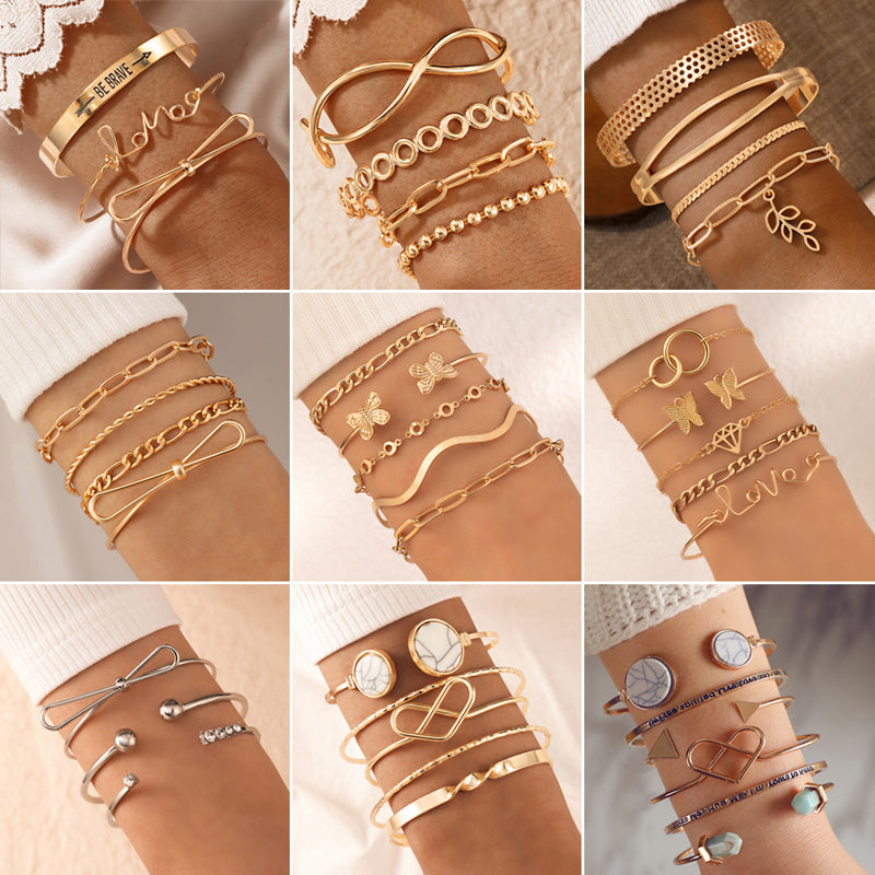Fashion Jewelry Geometric Heart & Triangle Turquoise Bracelet Set