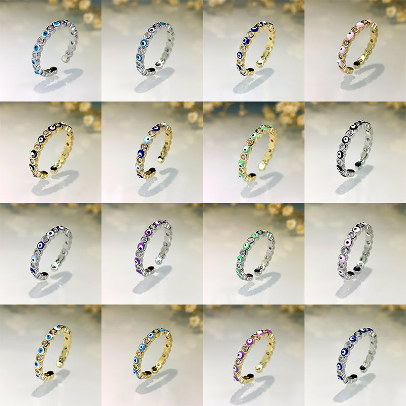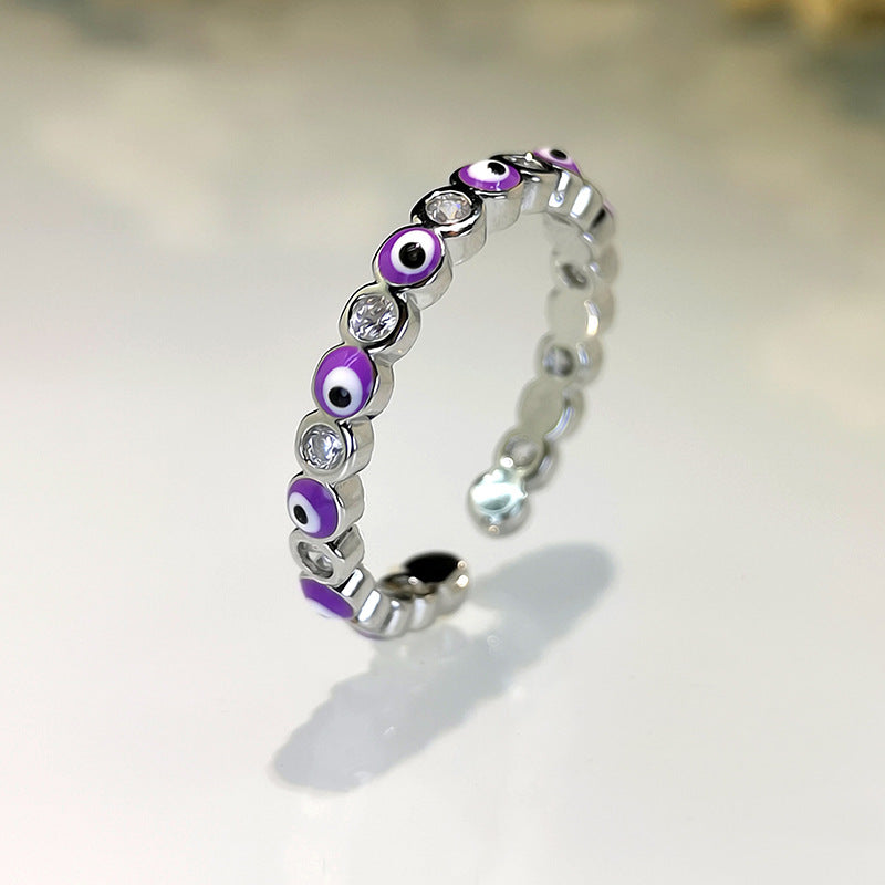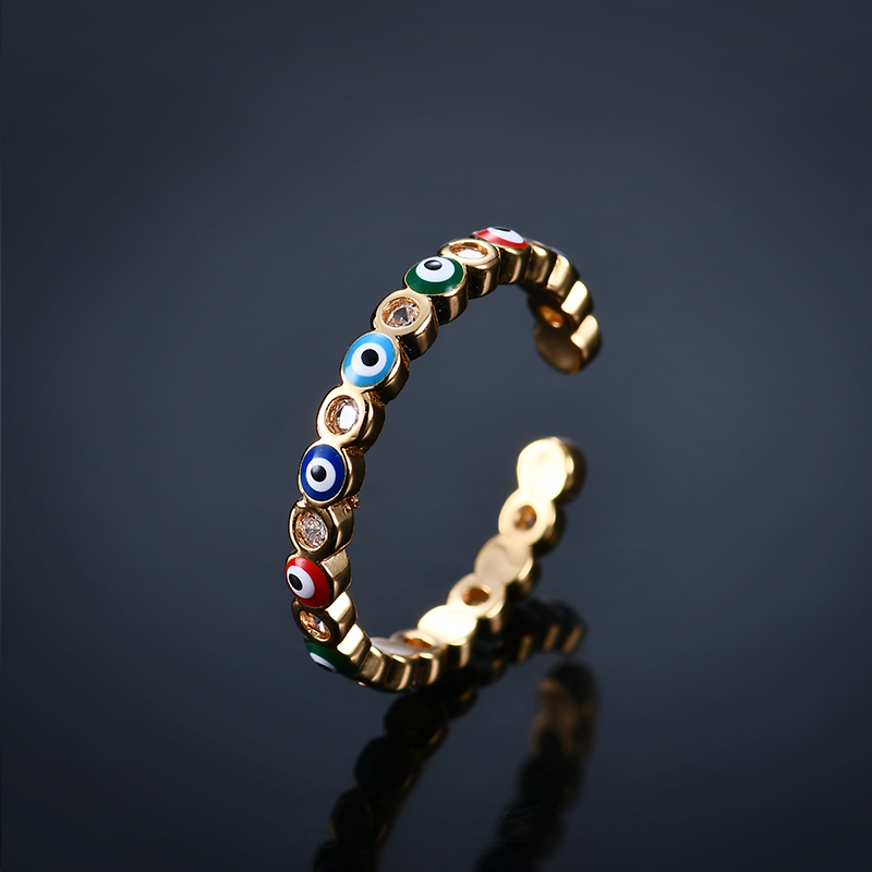 Fashion Jewelry Copper Ring with Micro-inlaid White Zircon and Enamel Evil Eye Design