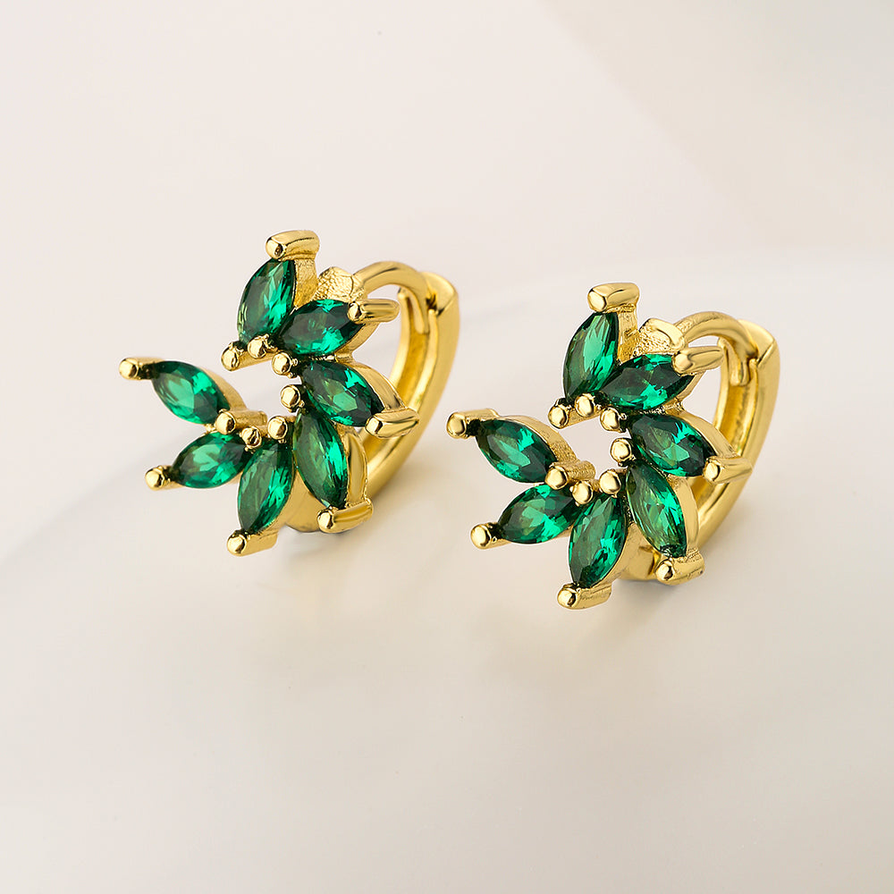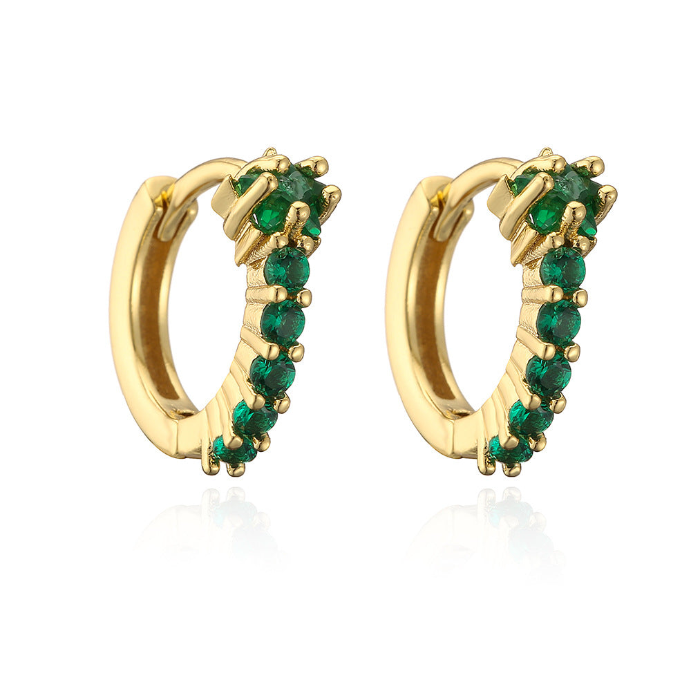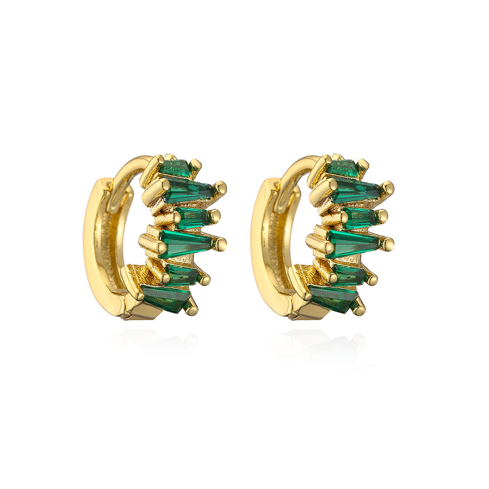 Elegant Geometric Green Zircon Gold Plated Copper Hoop Earrings