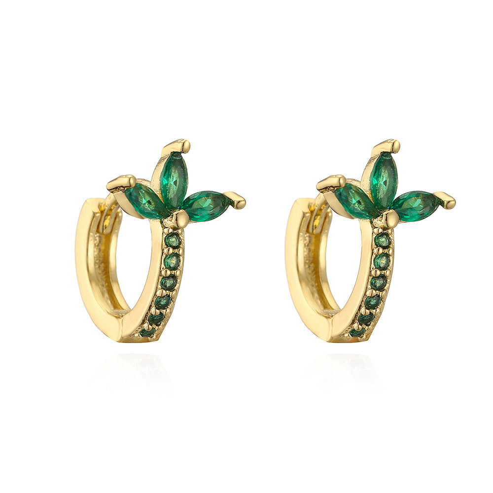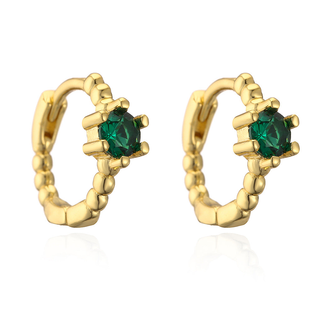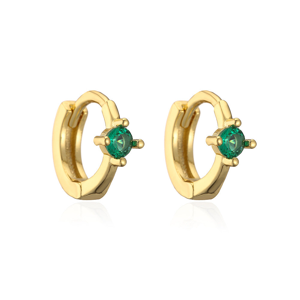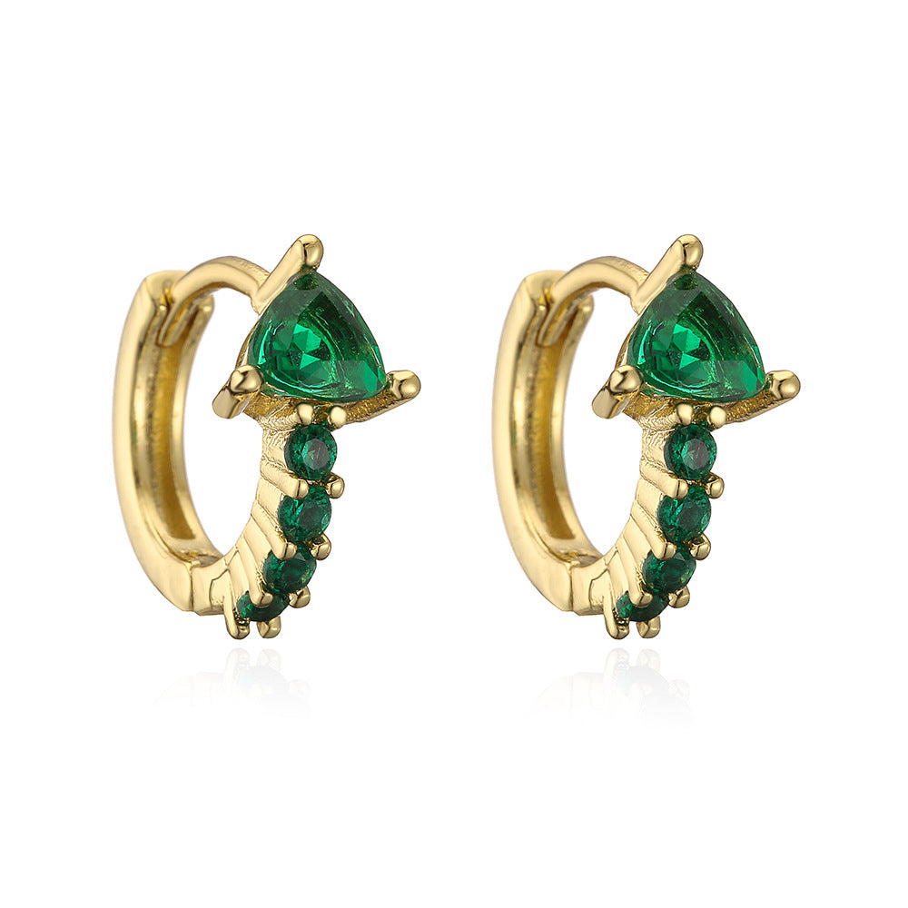 Elegant Geometric Green Zircon Gold Plated Copper Hoop Earrings