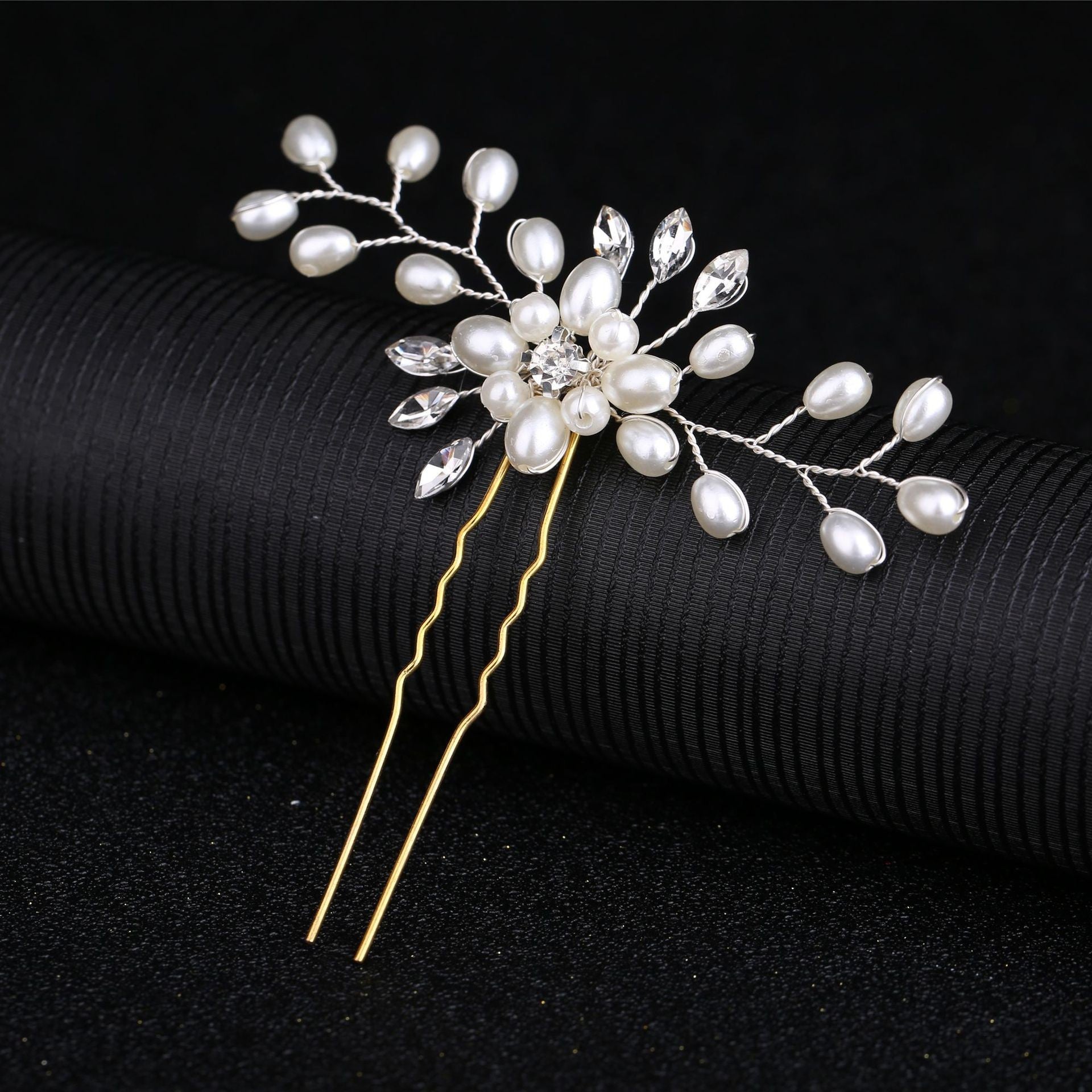 Fashion Leaf Rhinestone Pearl Crystal Bridal Hairpin U-Shaped Clip