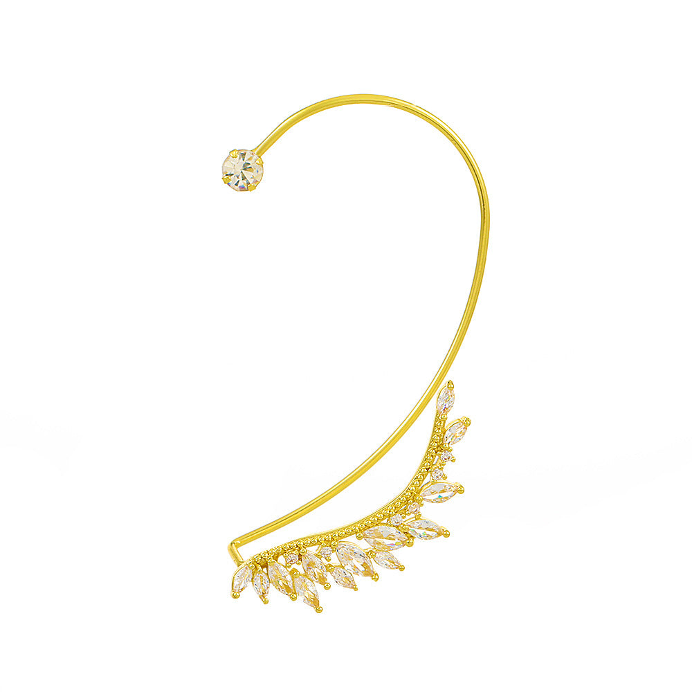 Geometric Leaf Rhinestone Ear Cuff Clips for Women
