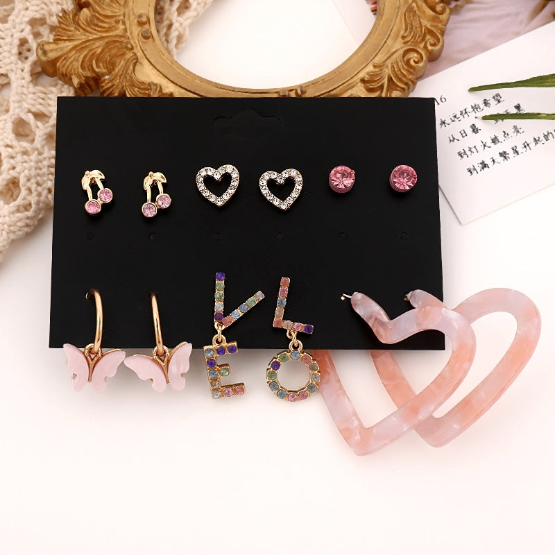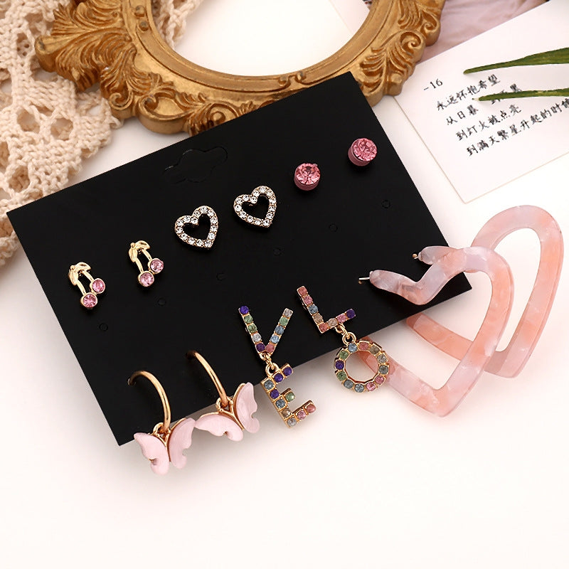 Fashion Heart Butterfly Rhinestone Inlay Earrings Set