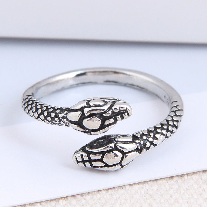 Fashion Metal Snake Open Alloy Ring & Black Vintage Minimalist Hoop Earrings