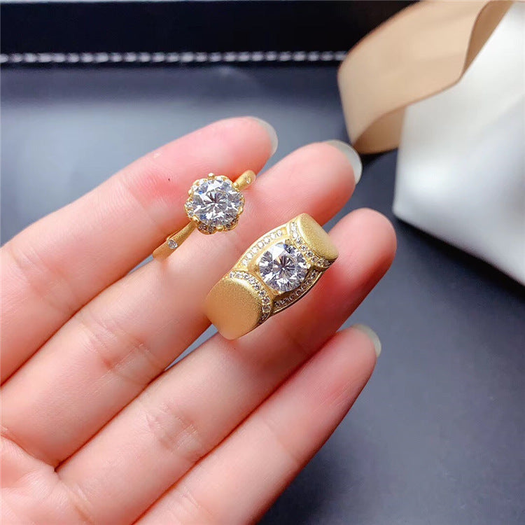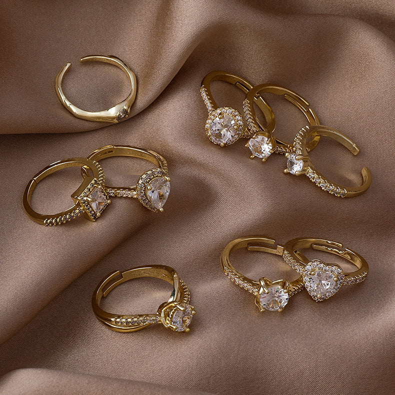 Fashion Zircon Heart Square Open Ring with 925 Silver Moissanite Stone
