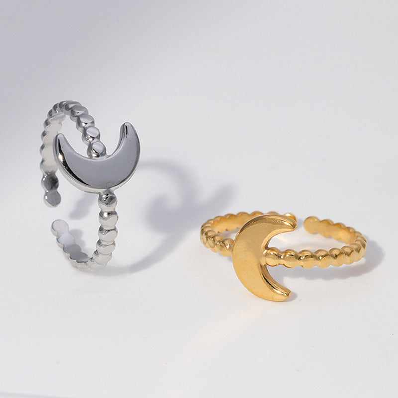 Fashion Moon Adjustable Titanium Steel Open Ring - Minimalist Design