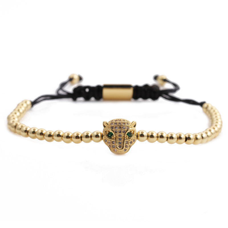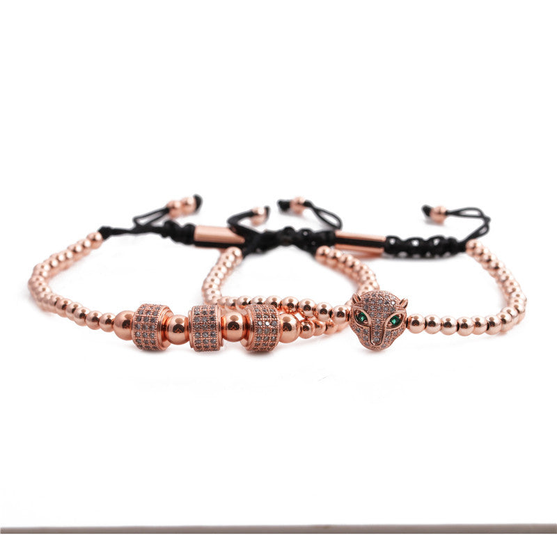 Lion Head Wheel Copper Bead Bracelet Set - Customizable Jewelry Collection