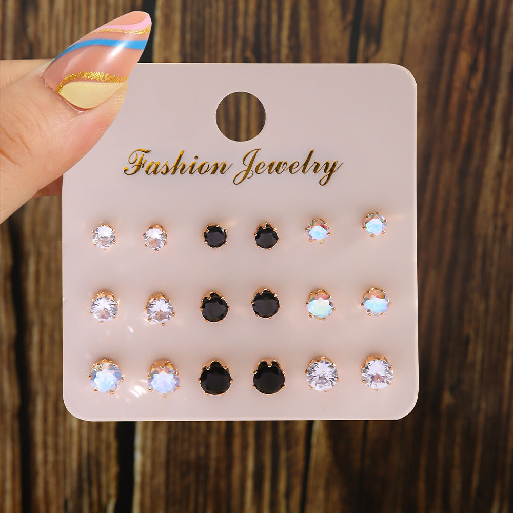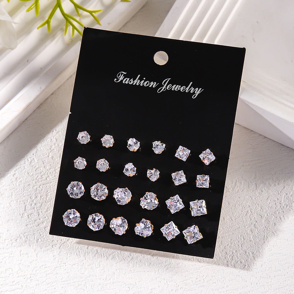Fashion Zircon Octopus Stud Earrings Set - 12 Pairs Trendy Minimalist Jewelry for Women