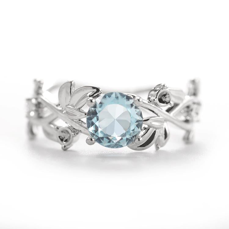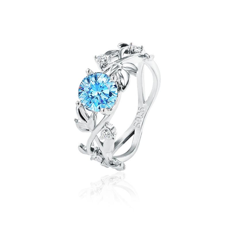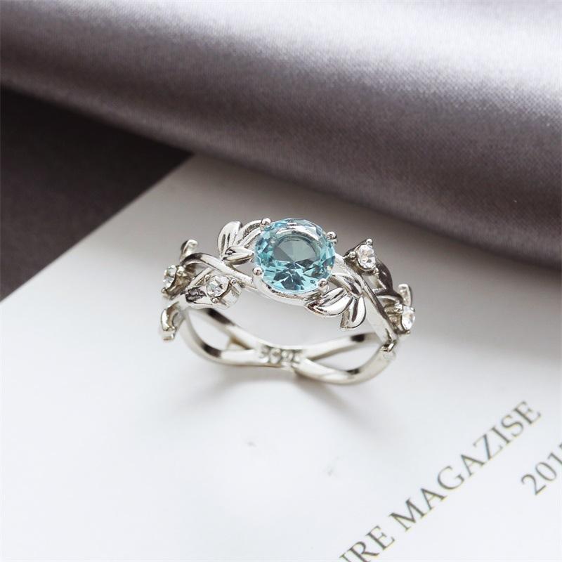 Fashion OL Leaf Diamond Zircon Ring 925 Silver Sapphire Copper Jewelry
