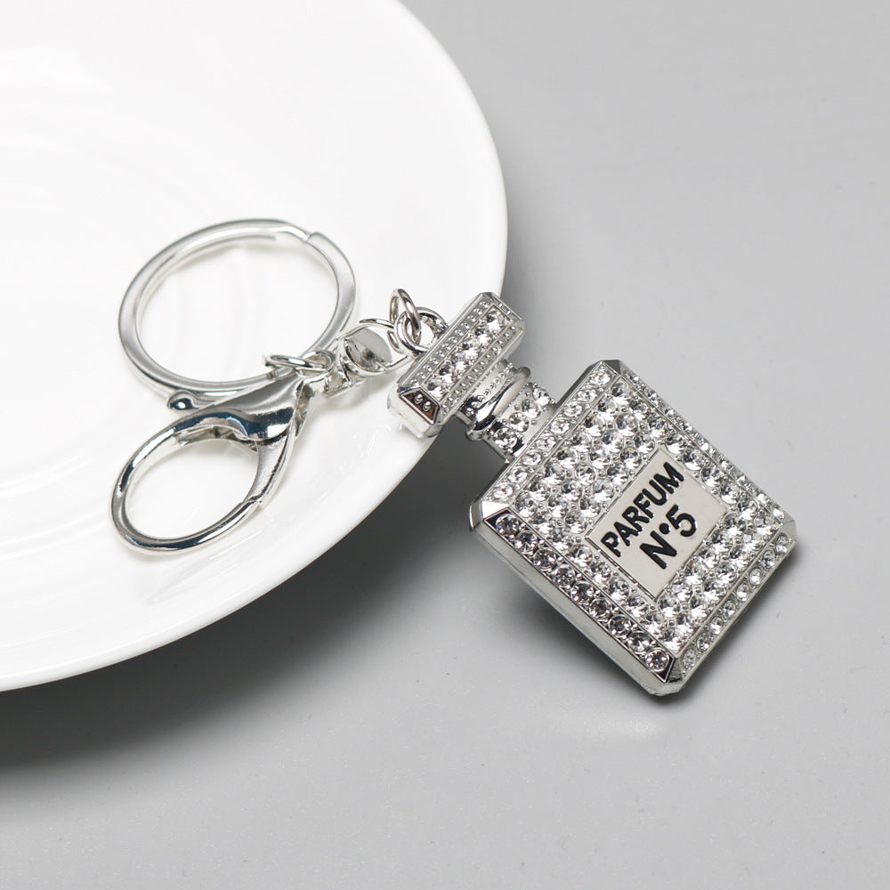 Fashion Rhinestone Perfume Bottle Keychain Pendant for Women