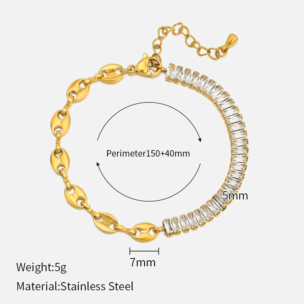 Fashion Rectangle Stainless Steel Rhinestone Inlay Bracelet for Women