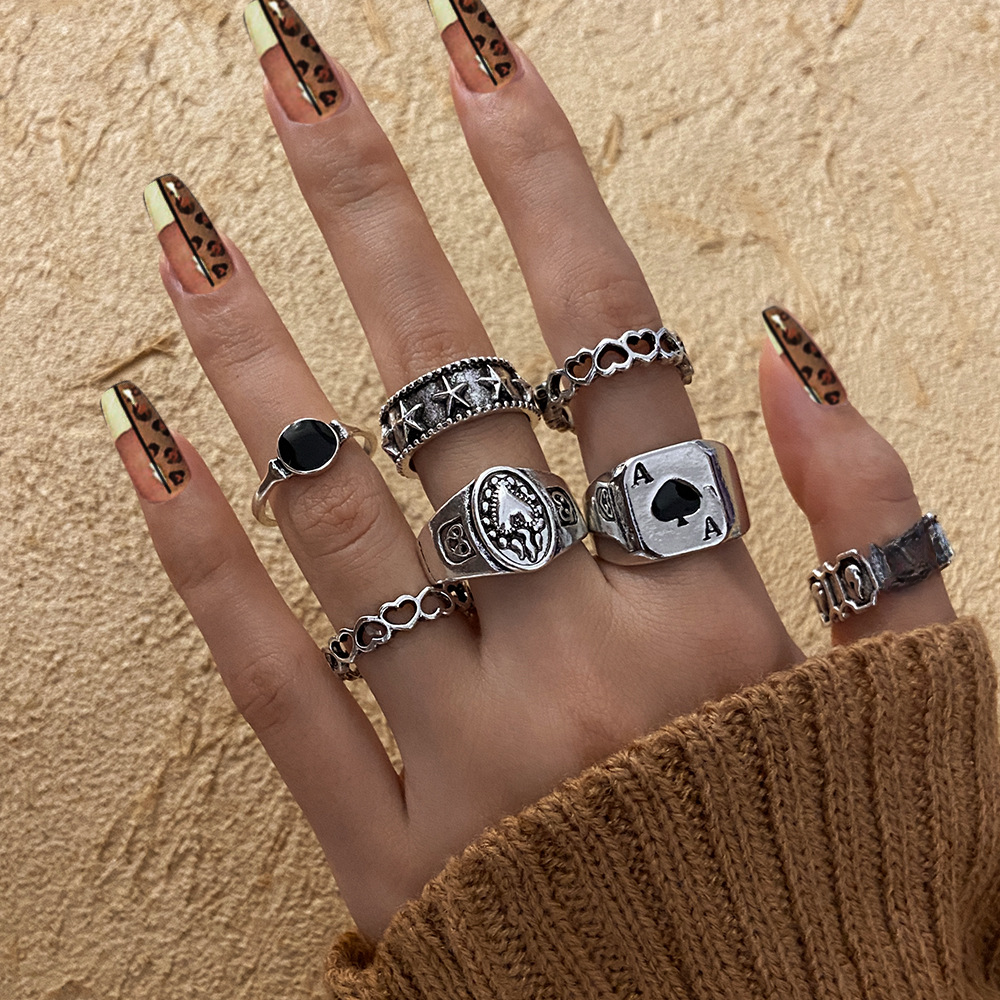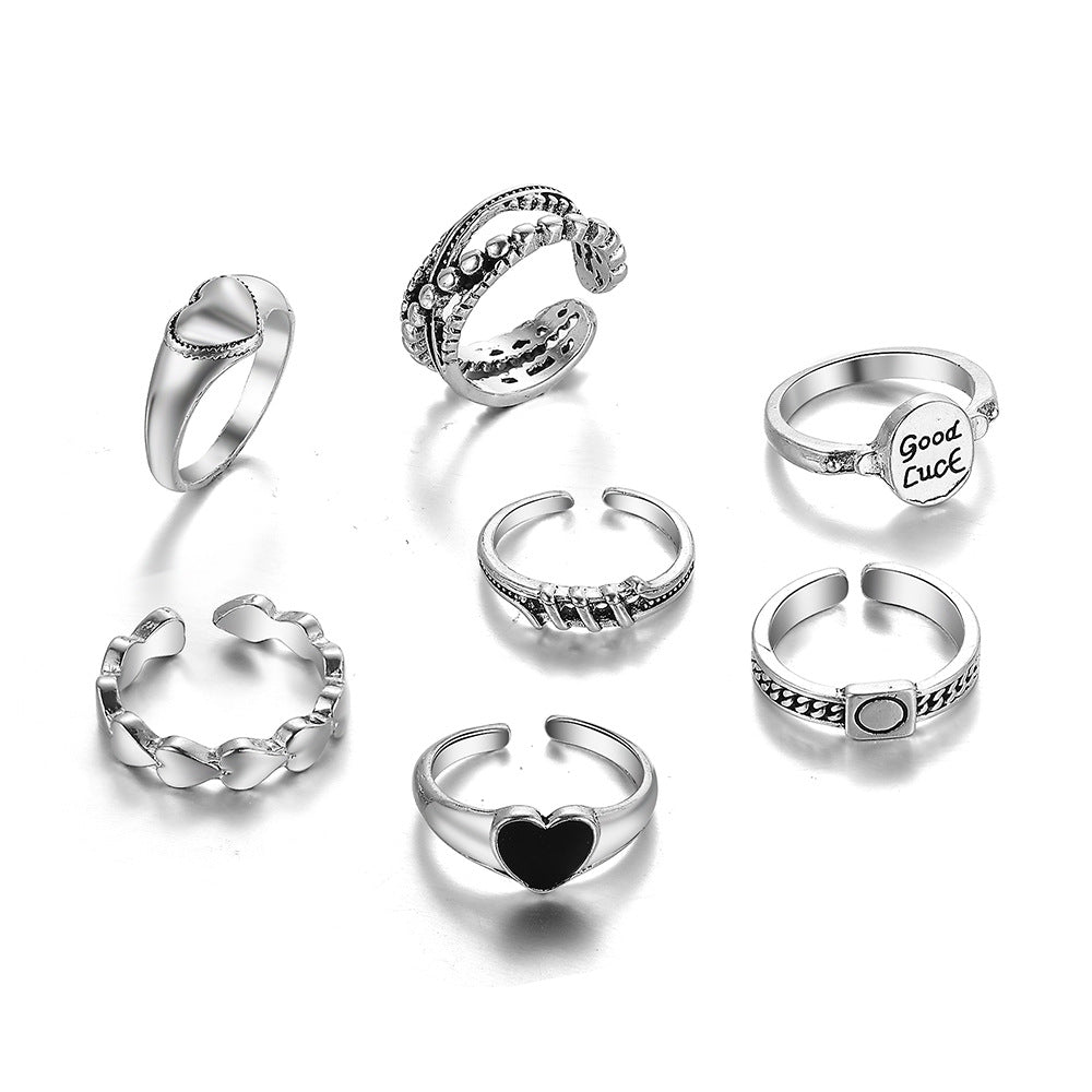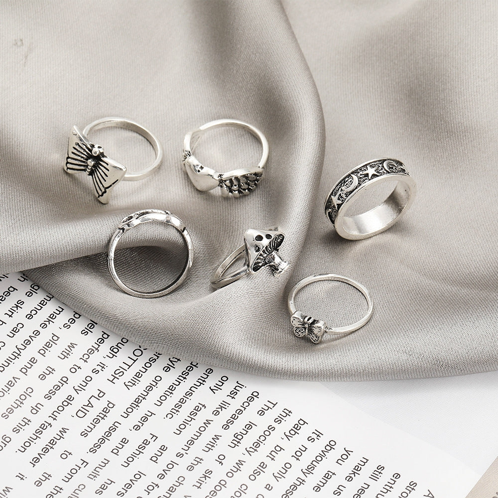 Vintage Alloy Mushroom & Heart Ring Set - 13 Pieces