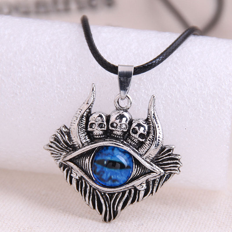 Retro Skull Demon Eye Necklace & Waterproof Sunset Tattoo Sticker Set