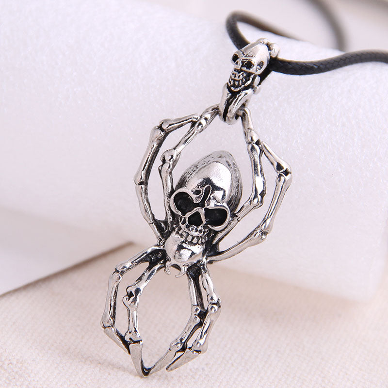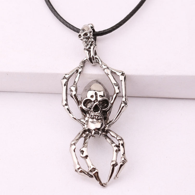 Men's Retro Skull Pendant Necklace - Punk Style Alloy with Leather Cord