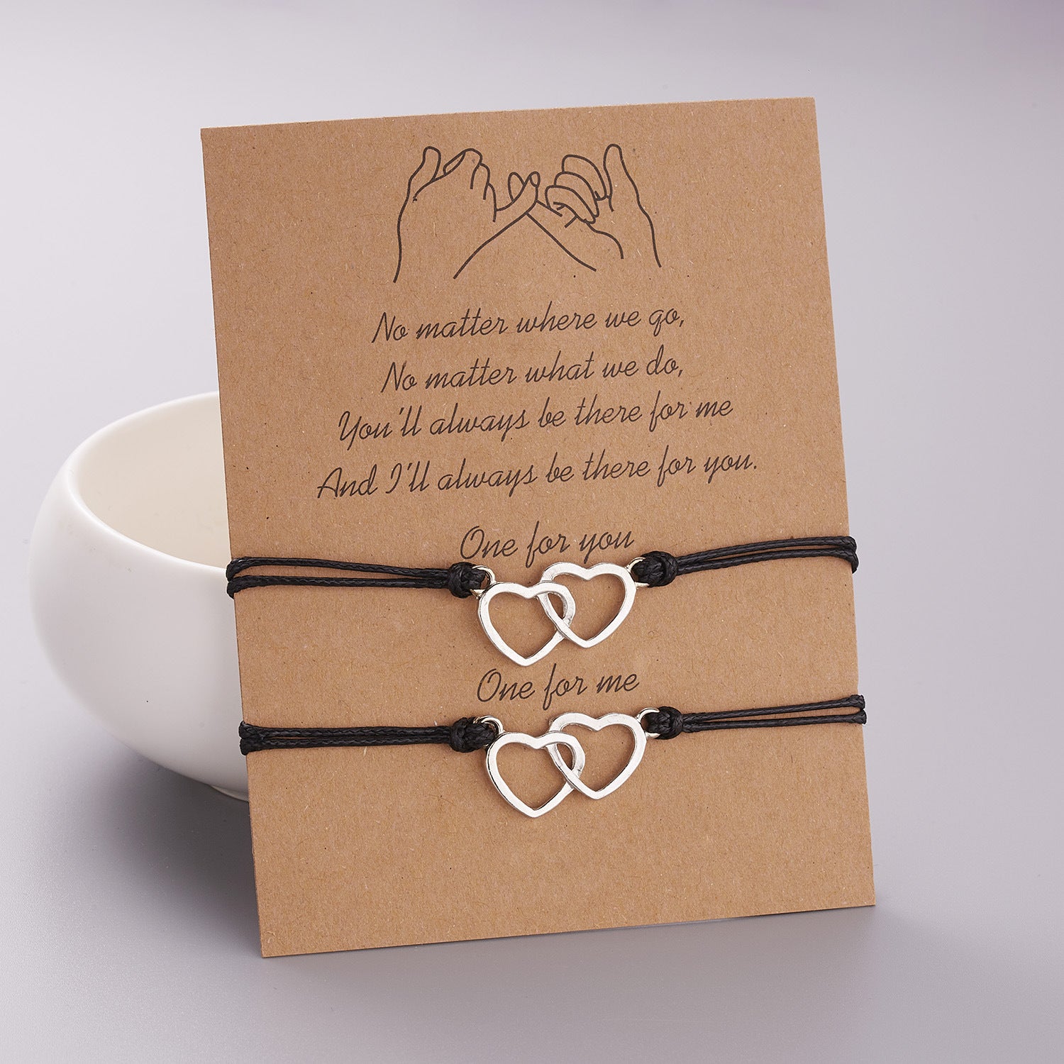 Fashion Seed Bead Rope & Volcanic Stone Heart Charm Bracelet Set for Women