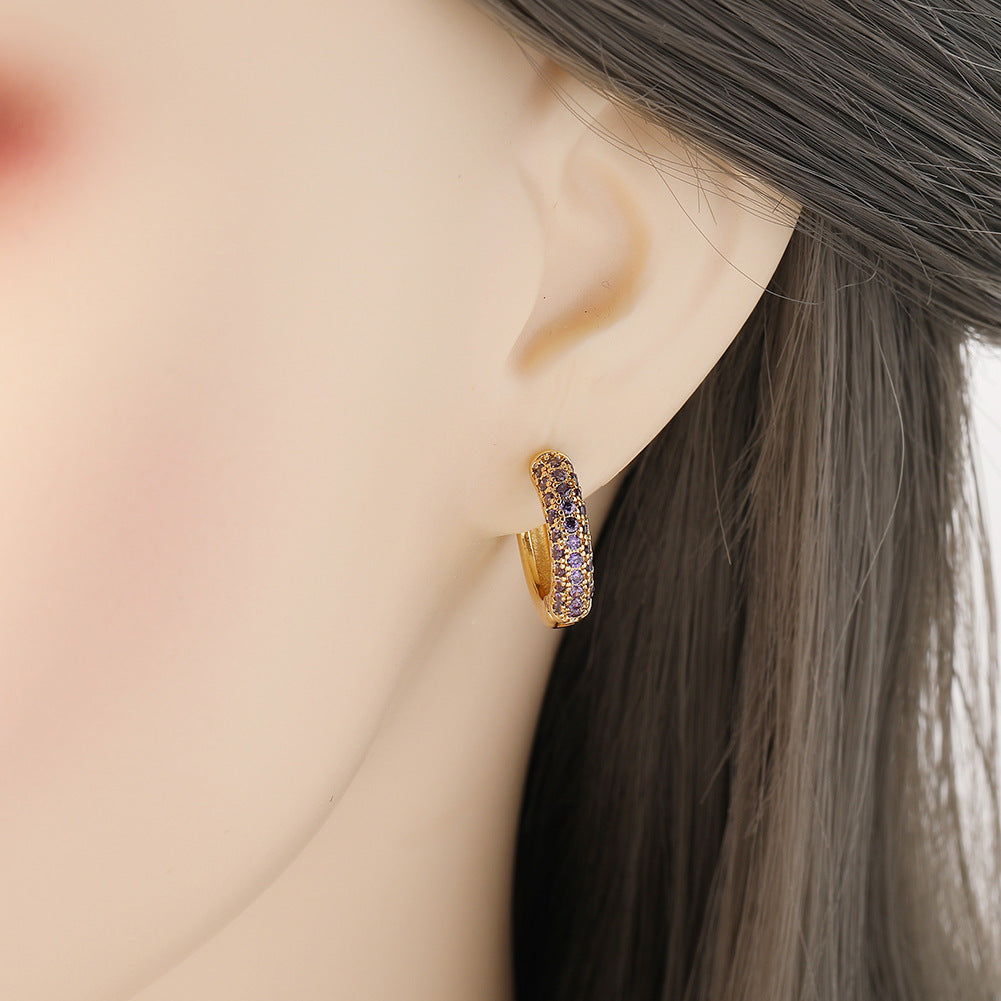 Fashion Round Zircon Gold Plated Hoop Earrings