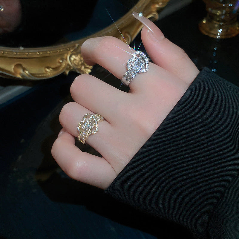 Fashion Heart & Bow Knot Zircon Adjustable Copper Ring