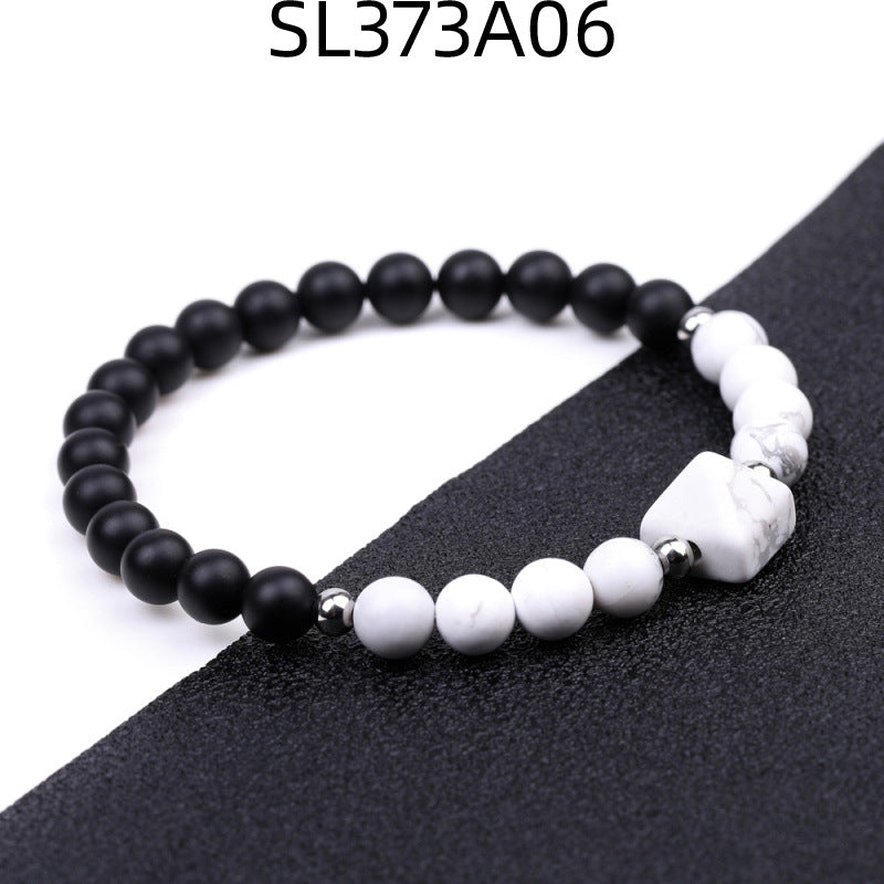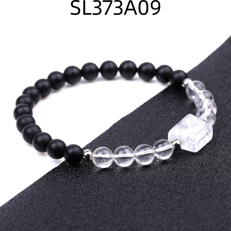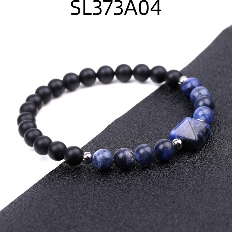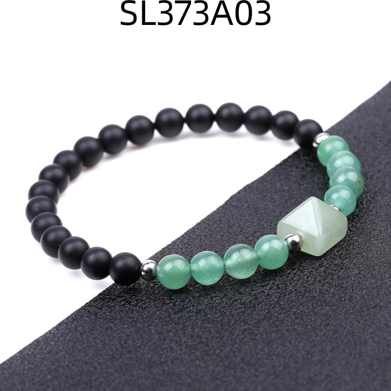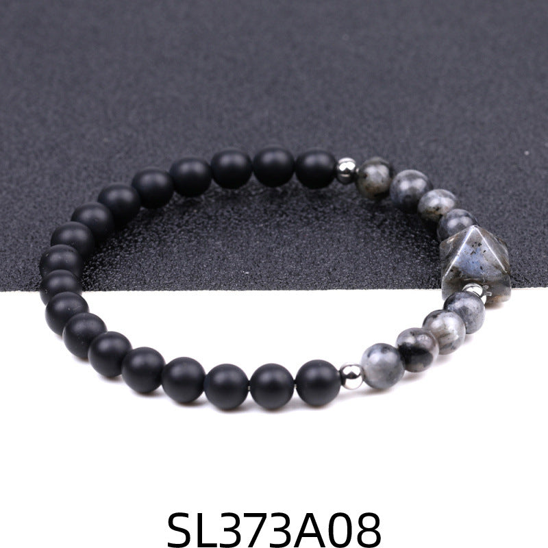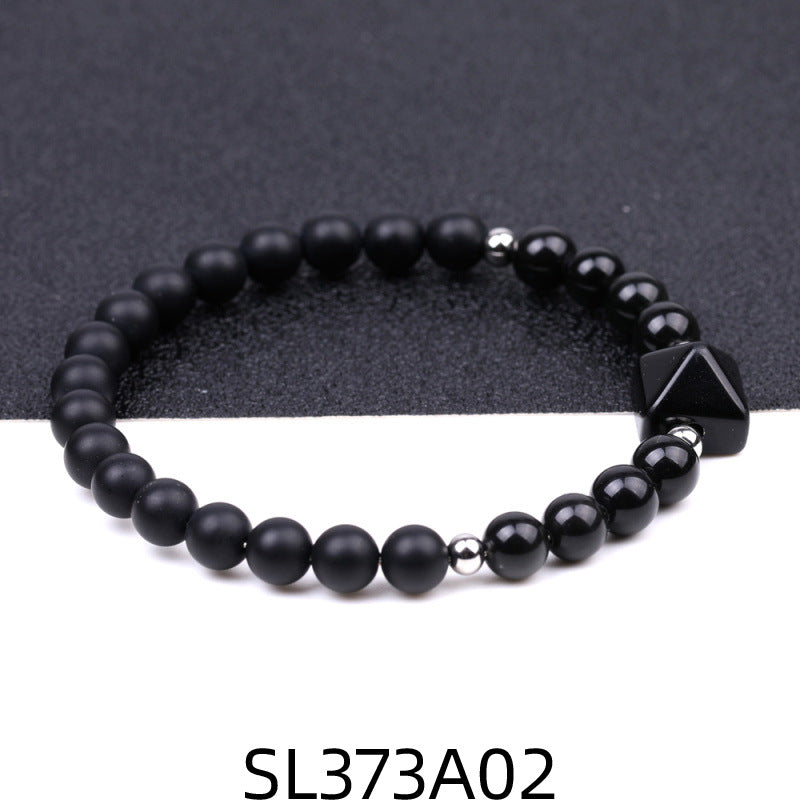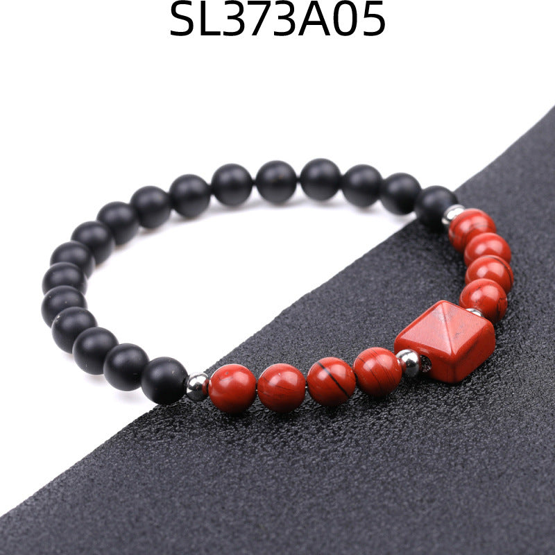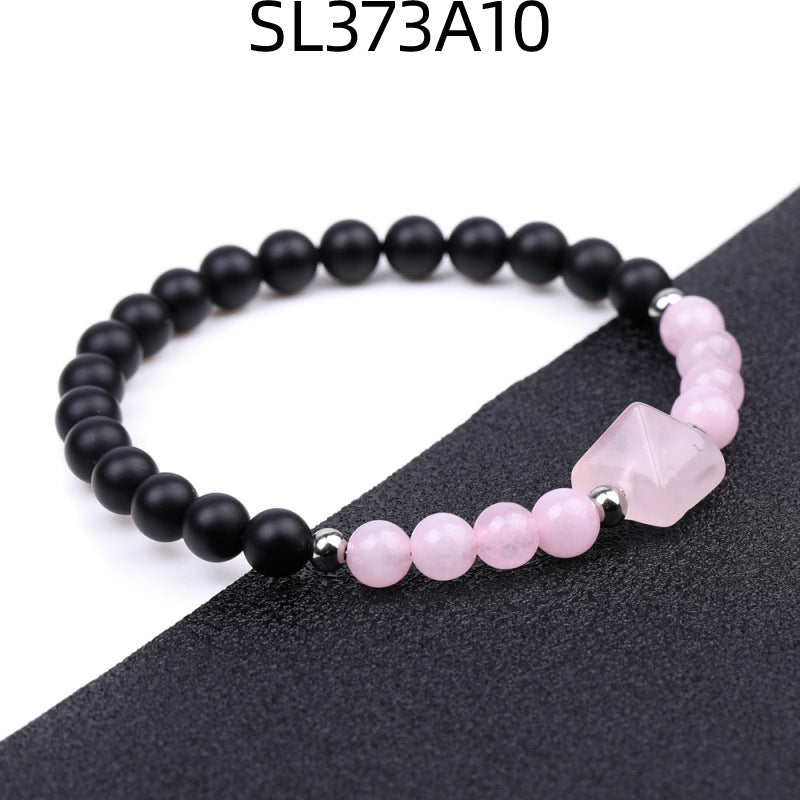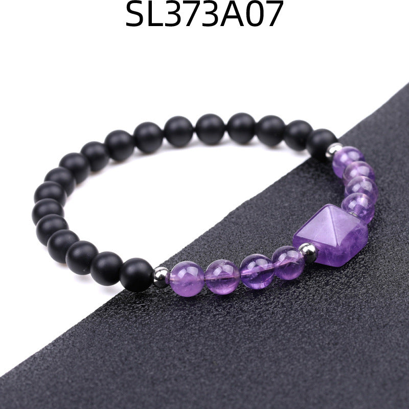 Fashion Round Natural Stone Beaded Bracelet with 6mm Tiger Eye, Amethyst, and Rose Quartz Pyramid Design