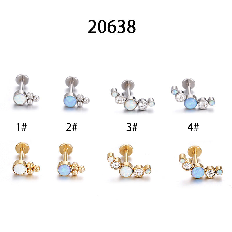 Fashion Round Stainless Steel Zircon Inlay Lip Stud 16g Opal Gemstone Piercing Jewelry