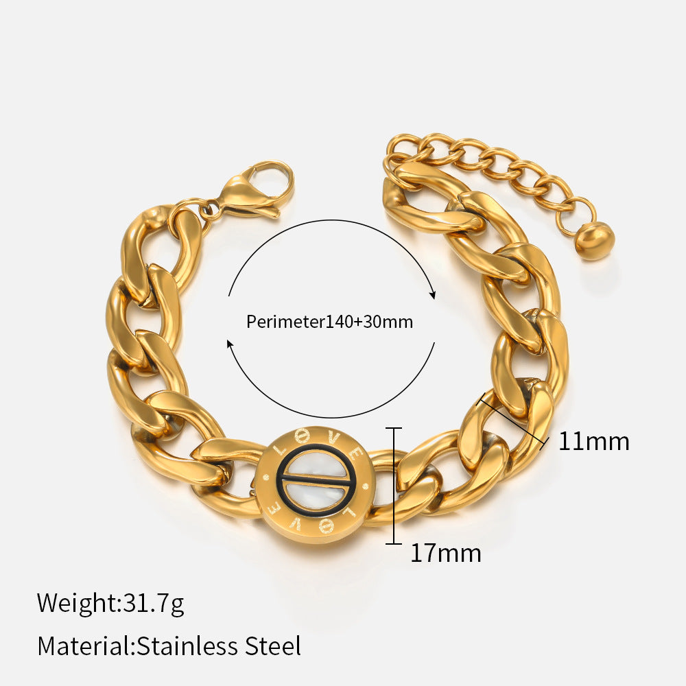 Fashion Geometric Stainless Steel Natural Stone Cuban Chain Bracelet for Women
