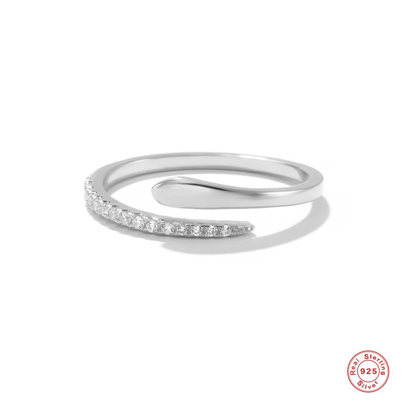 Sterling Silver Zircon Snake Design Adjustable Ring