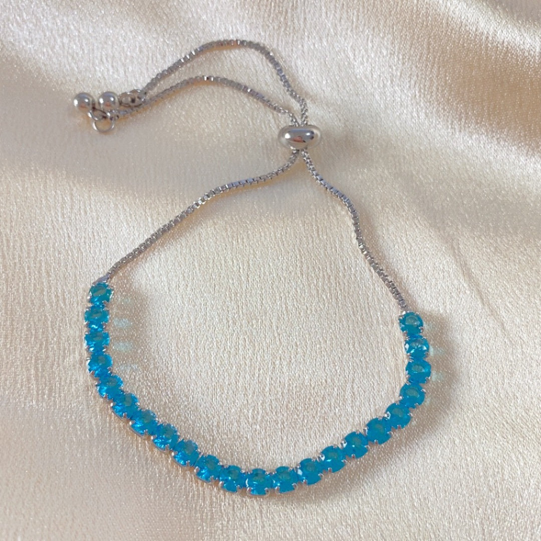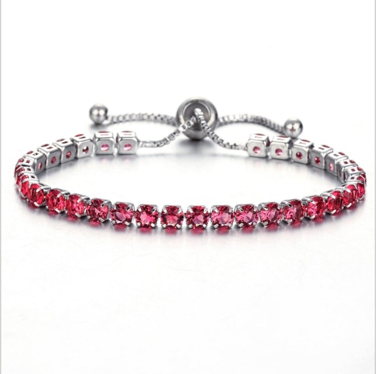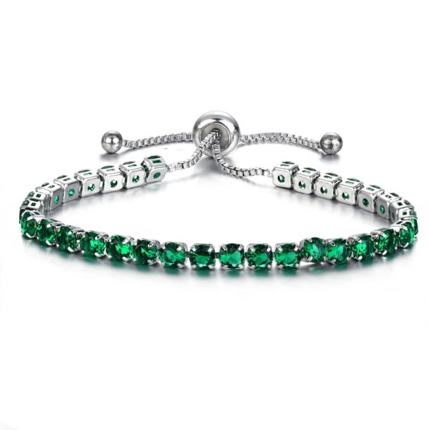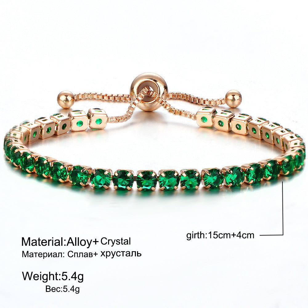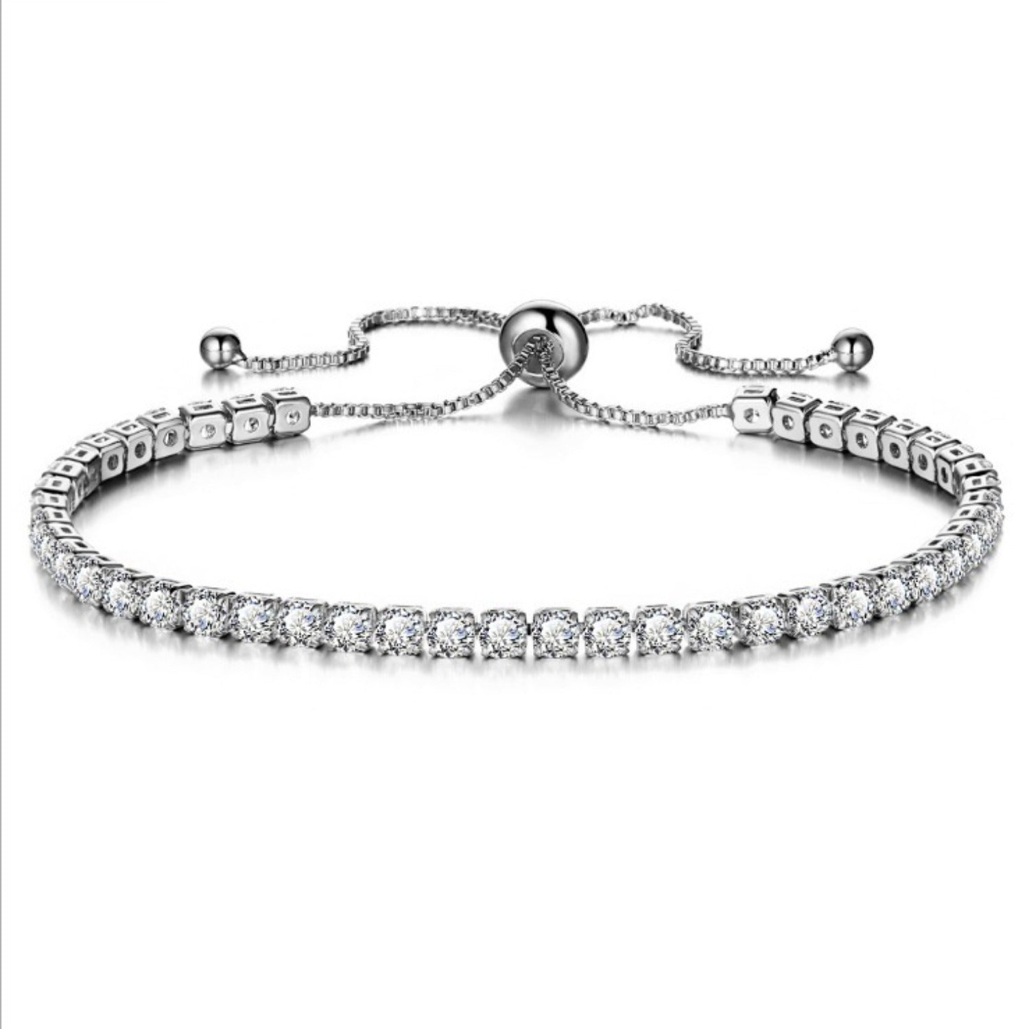 Fashion Adjustable Crystal Pull Bracelet - Gold Plated Zirconia Single Row Design