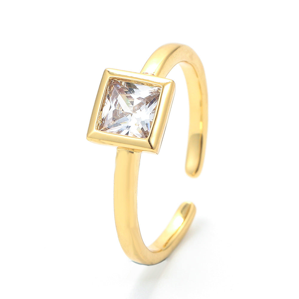 Fashion Minimalist Copper Zircon Square Diamond Ring for Couples