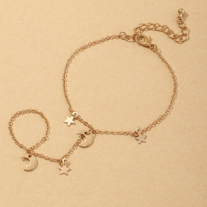 Fashion Double Finger Star and Moon Pendant Bohemian Bracelet