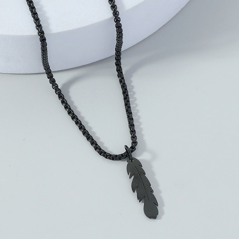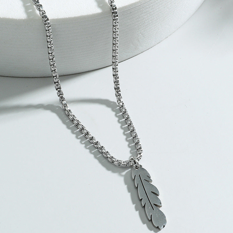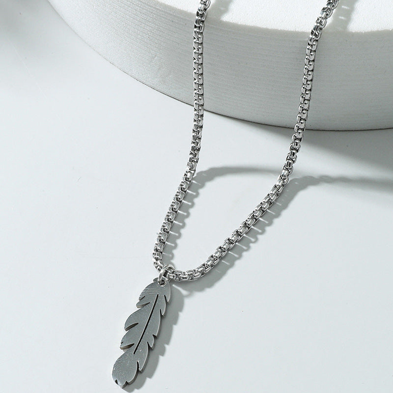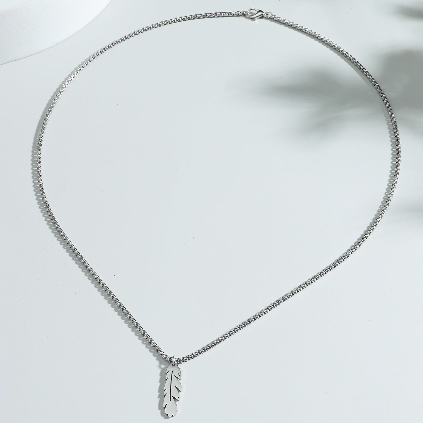 Fashion Simple Feather Necklace with Personalized Stainless Steel Leaf Pendant Jewelry
