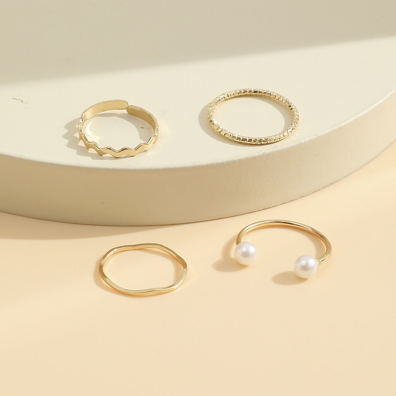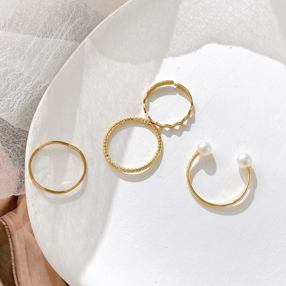 Fashion Simple Pearl Wave Twist Joint Alloy Ring Set - Four Pieces