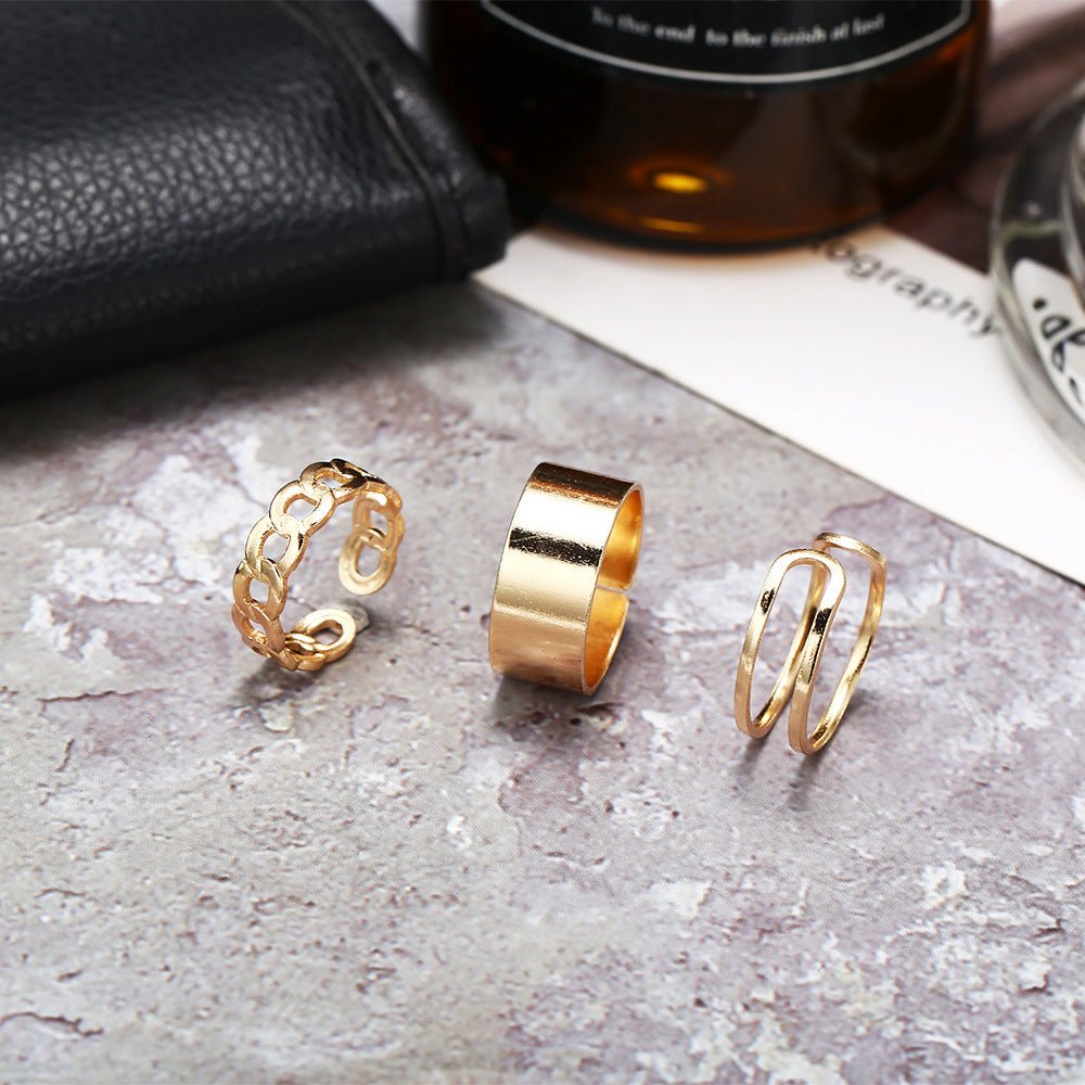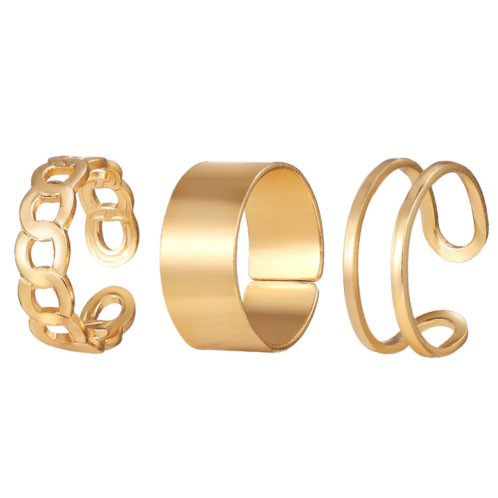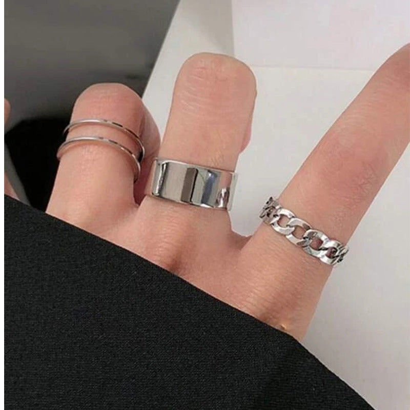 Fashion Minimalist Wide Band Ring Set - Adjustable Open Cuff Design