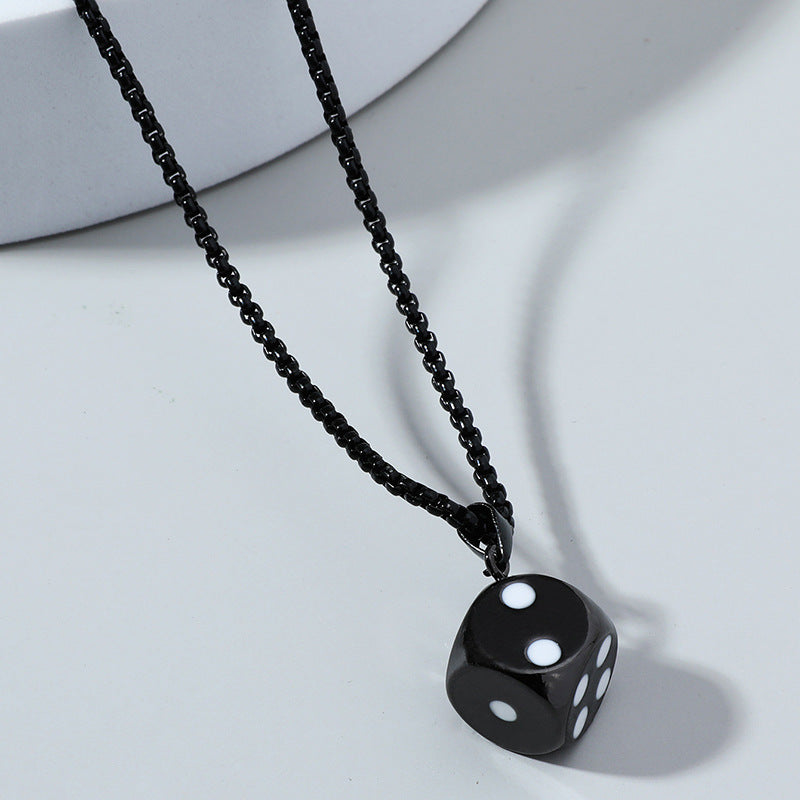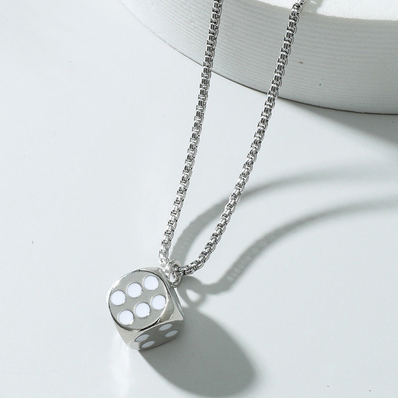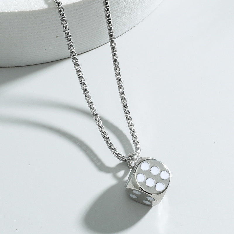 Fashion Stainless Steel Dice Pendant Necklace - Minimalist Hip Hop Jewelry Accessories