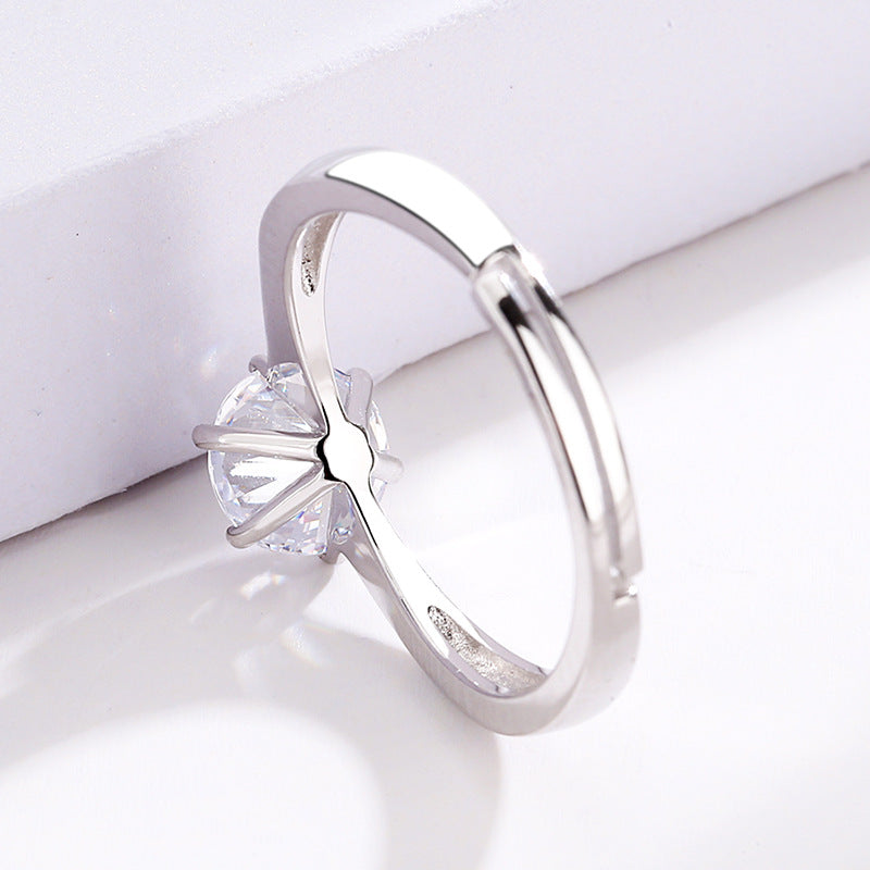 Sterling Silver Geometric Gemstone Adjustable Ring for Women