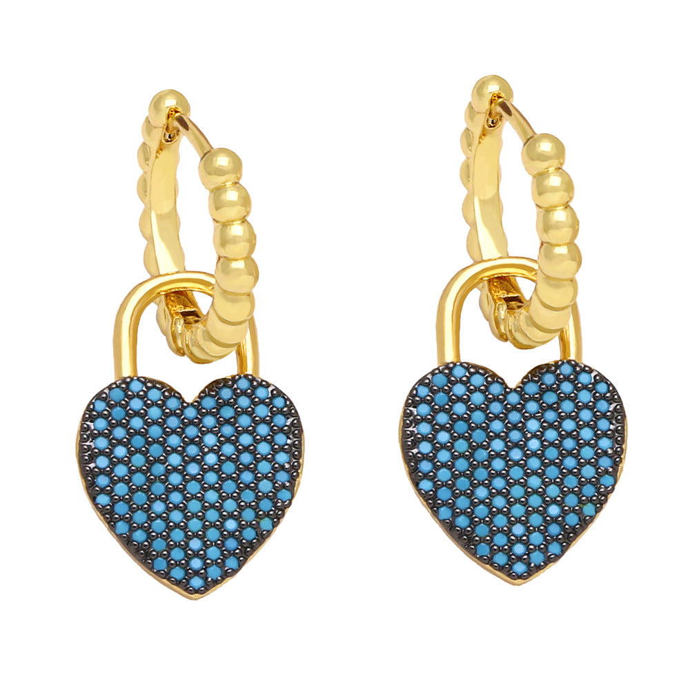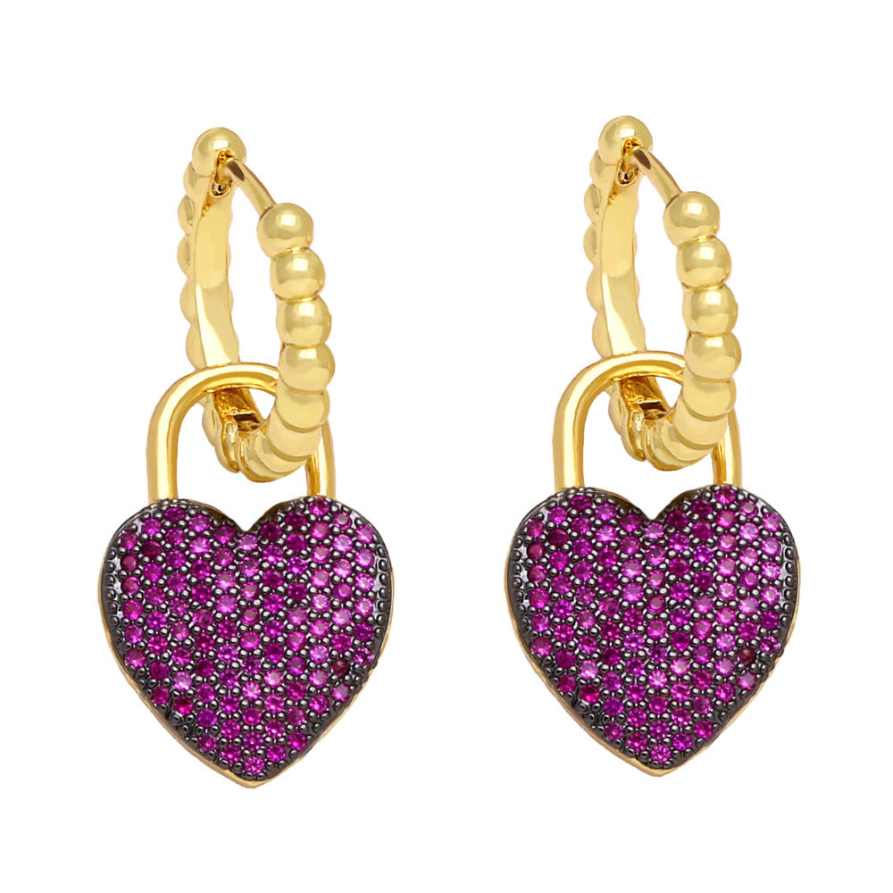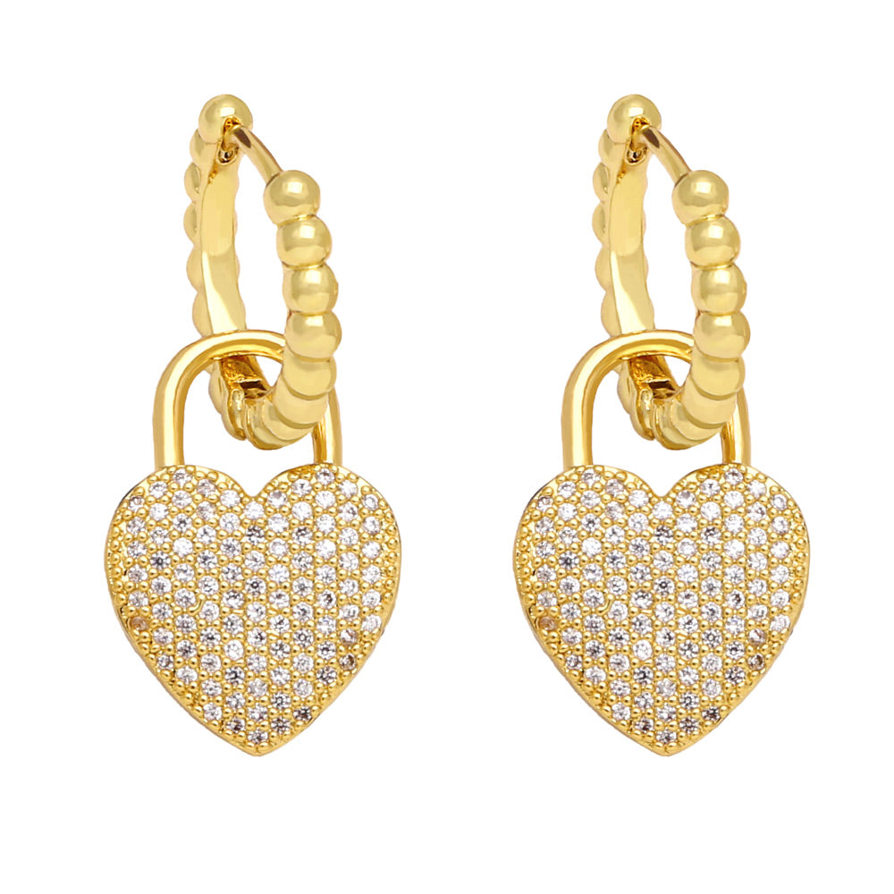 Fashion Heart Shape Zircon Inlay Copper Drop Earrings