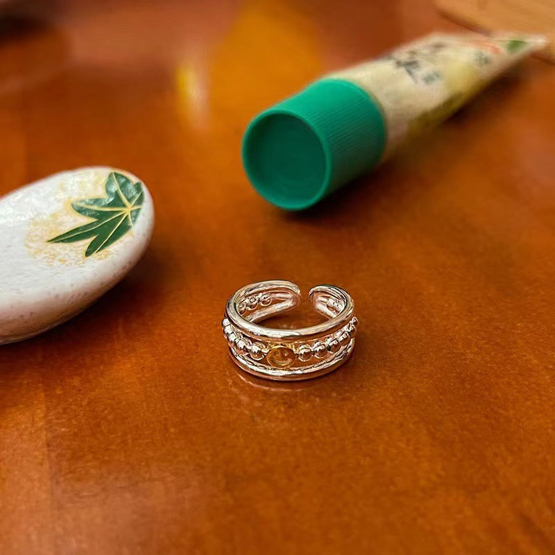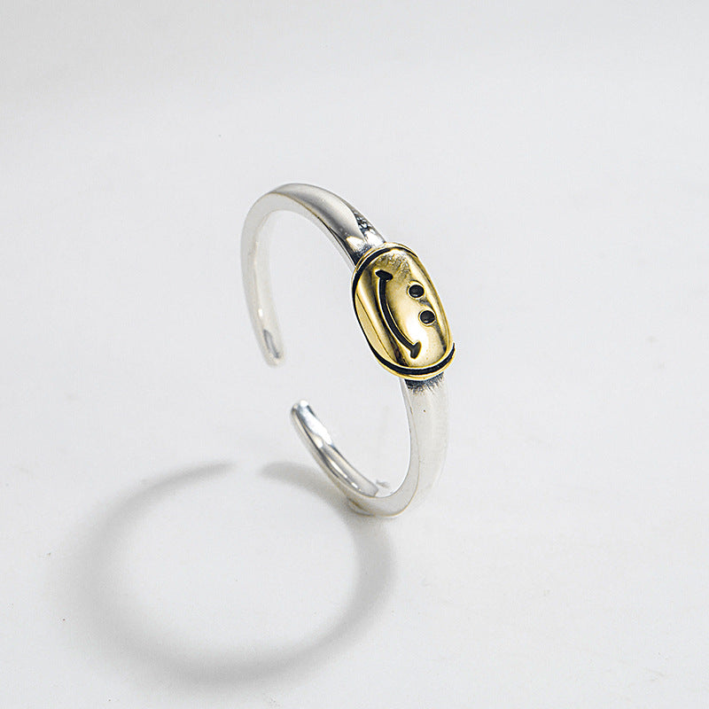Fashion Smiley Face 925 Sterling Silver Two-Tone Open Ring