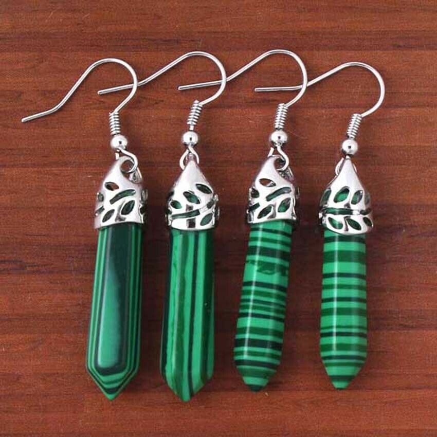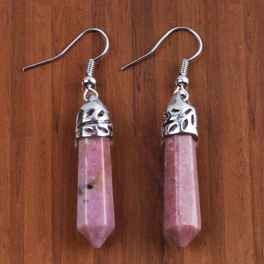 Fashion Solid Color Natural Crystal Gemstone Hexagonal Earrings