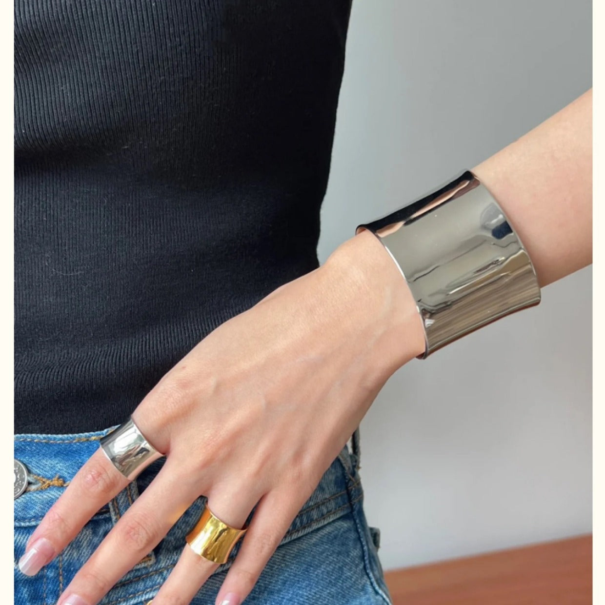Fashion Solid Color Metal Plated Wide Cuff Bracelet for Women