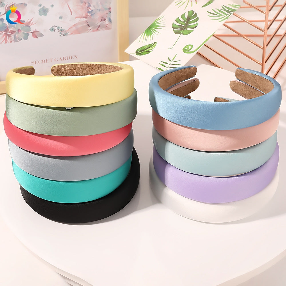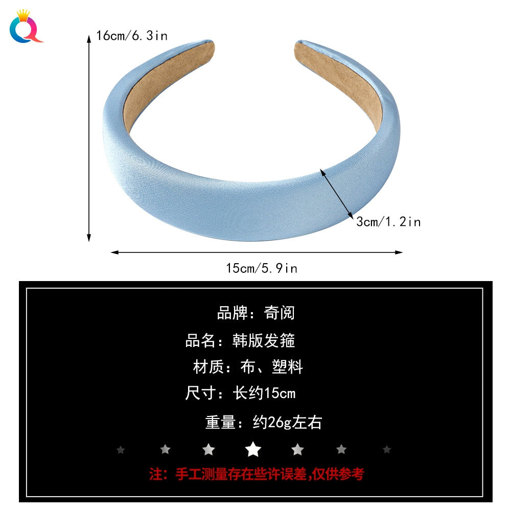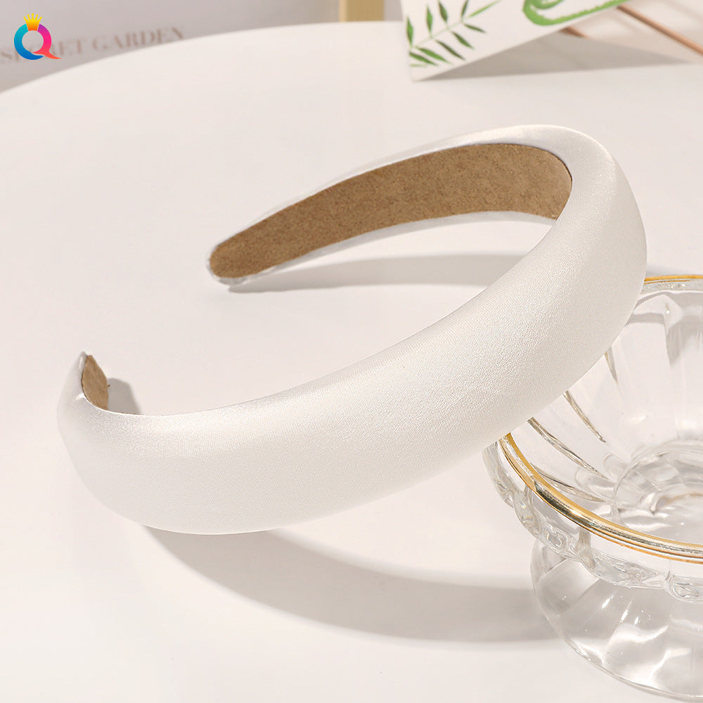 Satin sponge headband - white / Qiyue factory direct sales
