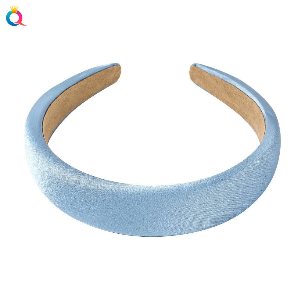 Satin sponge headband - lake blue / Qiyue factory direct sales