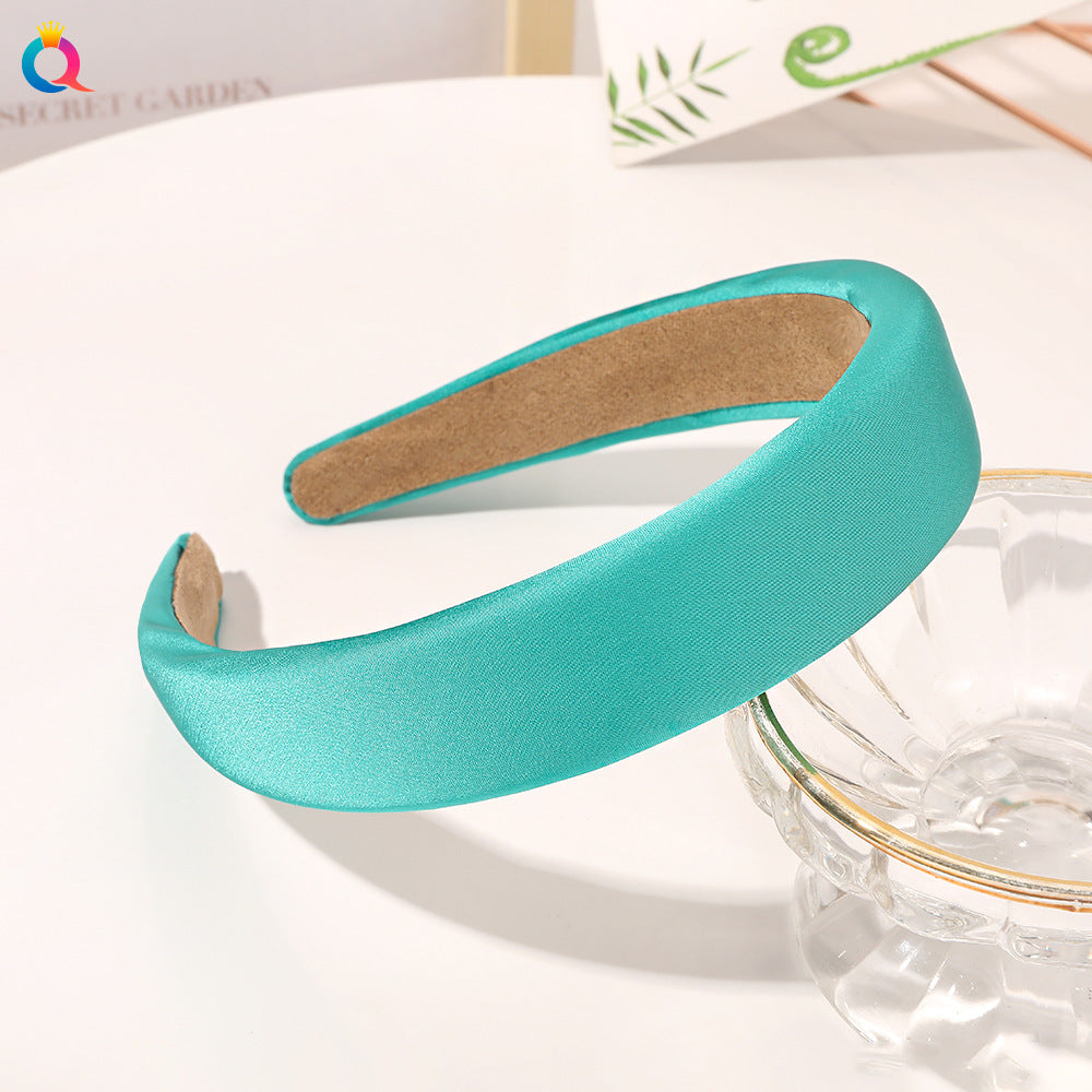 Satin sponge headband - lake green / Qiyue factory direct sales