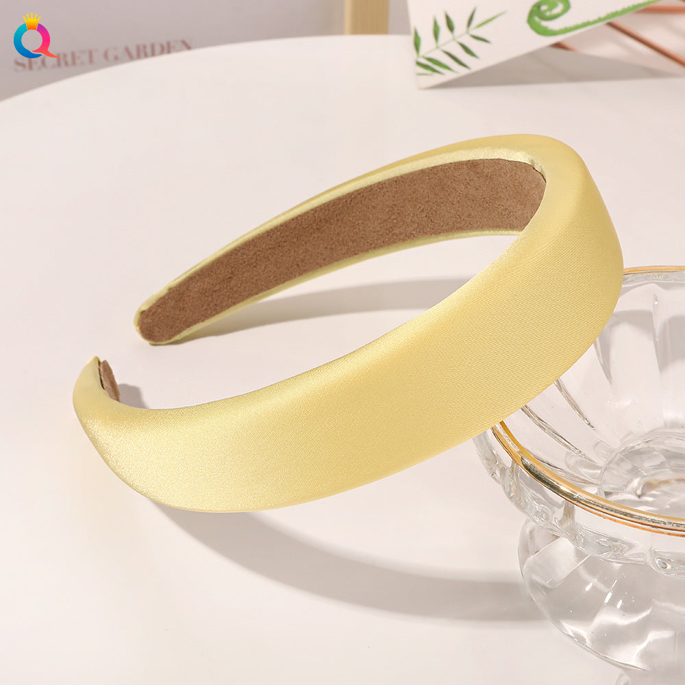Satin sponge headband - bright yellow / Qiyue factory direct sales