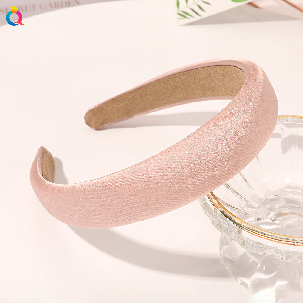 Satin sponge headband - peach pink / Qiyue factory direct sales
