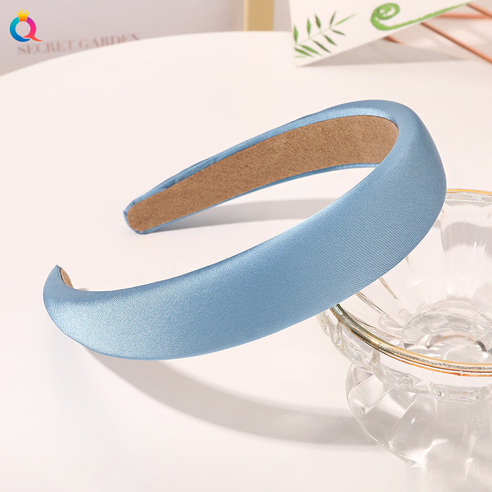Satin sponge headband - denim blue / Qiyue factory direct sales
