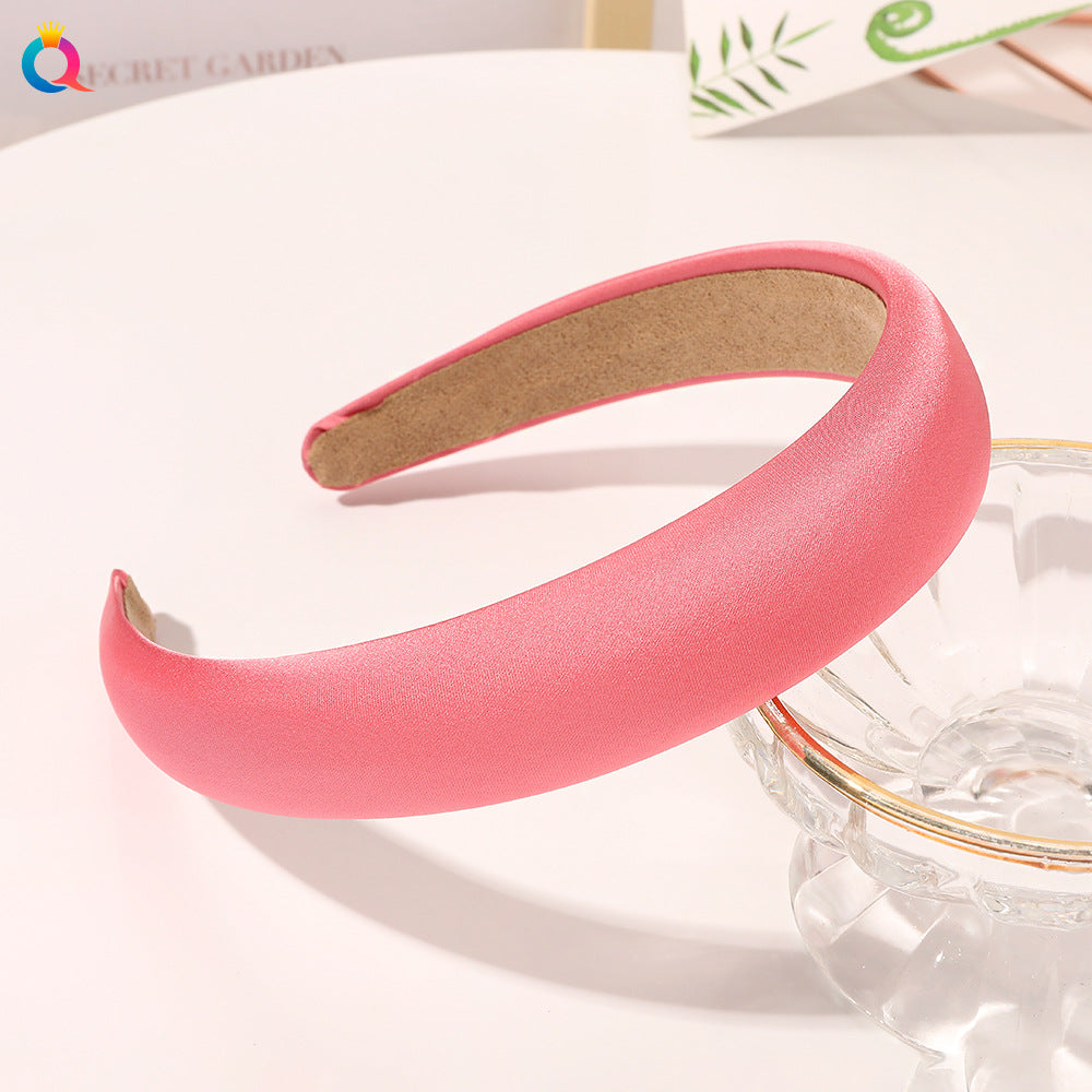Satin sponge headband - Korean pink / Qiyue factory direct sales